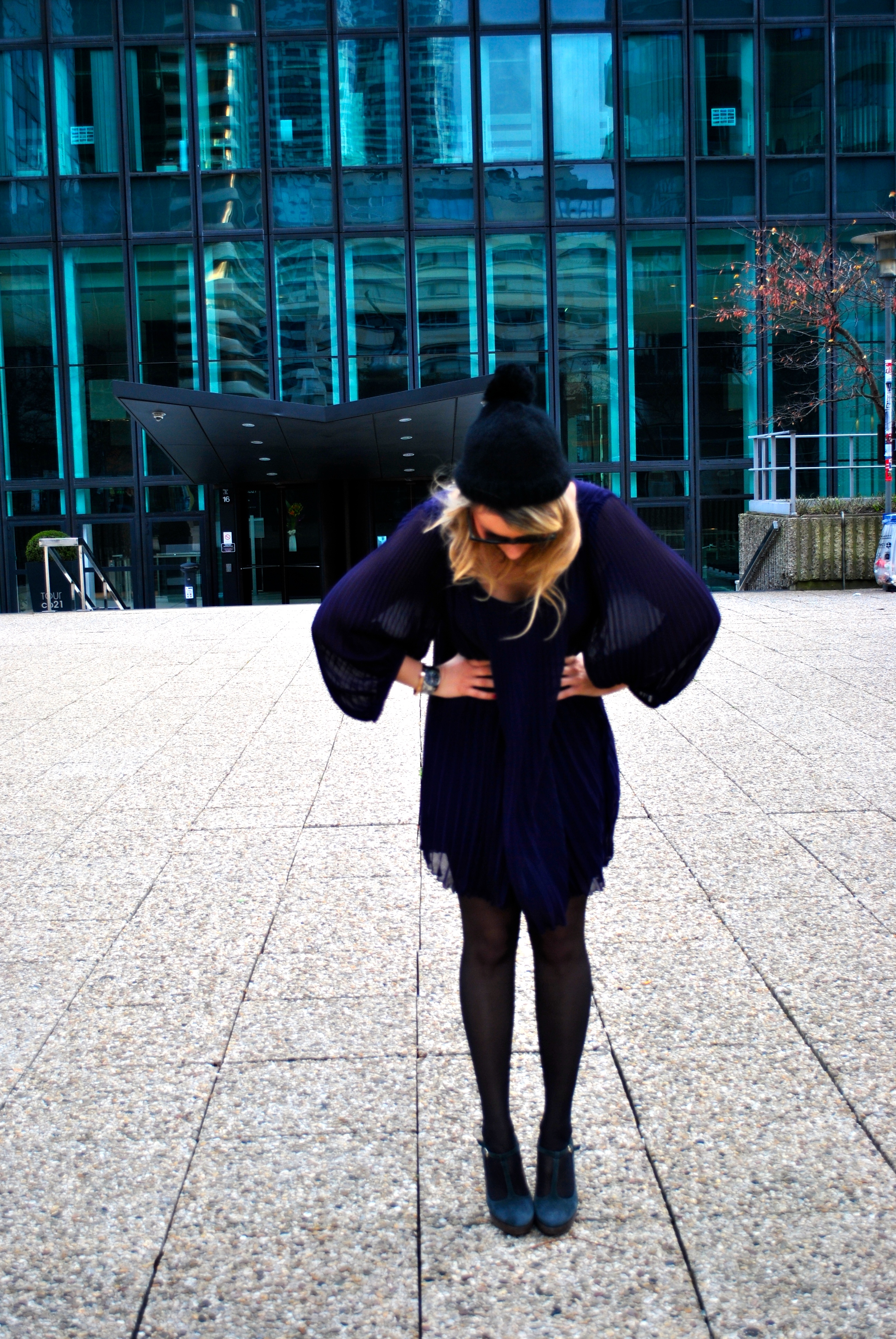 No I’m not pregnant, I just like how fluffy this dress is, it’s pleated and there is a lot of room in it, I know, but this is what makes is confortable too. I can handle a typical French dinner ( by typical I mean starter-main-cheese-dessert and not a light dinner !) with it without feeling bloated or feeling the need to hold back my happy stomach full of yummy food. I say yeah to the pregnancy dress ! Plus I can wear it all my life, it’ll always suit me.