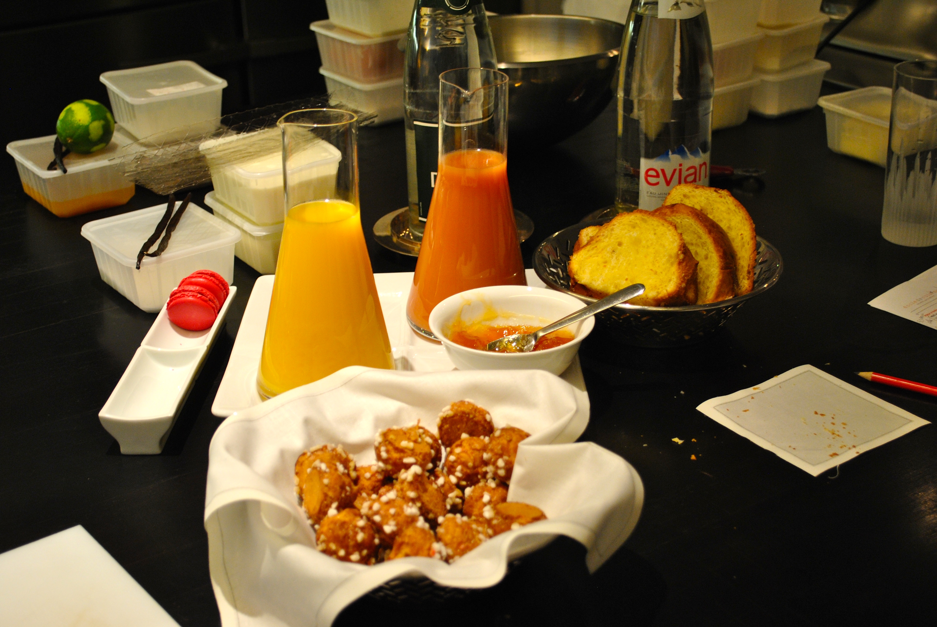 C’est fort sympathique, nous avons cuisiné plusieurs gâteaux, c’était un cours de patisserie, nous avons fait le fameux baba au rhum et un cheesecake à l’ananas rôti. Les deux gâteaux étaient excellents et le cours très intéressant. Le chef pâtissier nous a donné des « trucs » et biensûr plein d’histoires et d’anecdotes sur les années qu’il avait passé dans les cuisines des grands hotels parisiens.