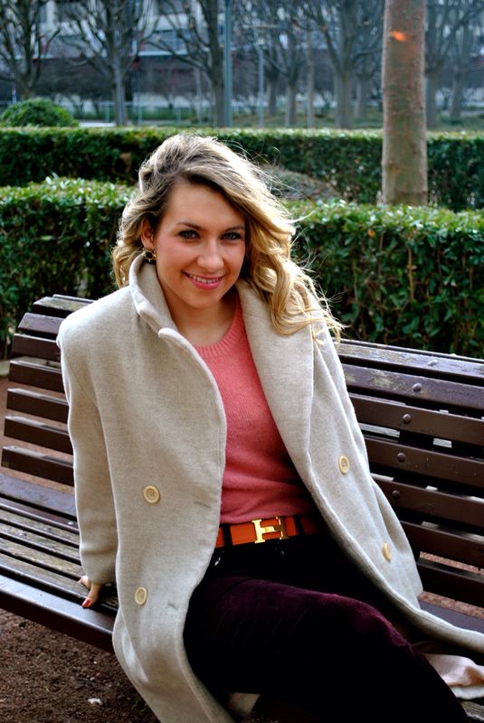 Voici un look, d’hiver, parce que l’hiver est bel et bien là à présent ! J’ai mixé ici des habits que j’ai chiné comme ce manteau beige trouvé pour 2 euros avec des accessoires plus chers comme la montre Kelly de la maison Hermès de ma maman et la ceinture H. J’aime mélangé les trésors trouvés dans des bacs chez Emmaus ou dans des friperies avec des accessoires de luxe pour mettre une petite touche chic à la tenue.