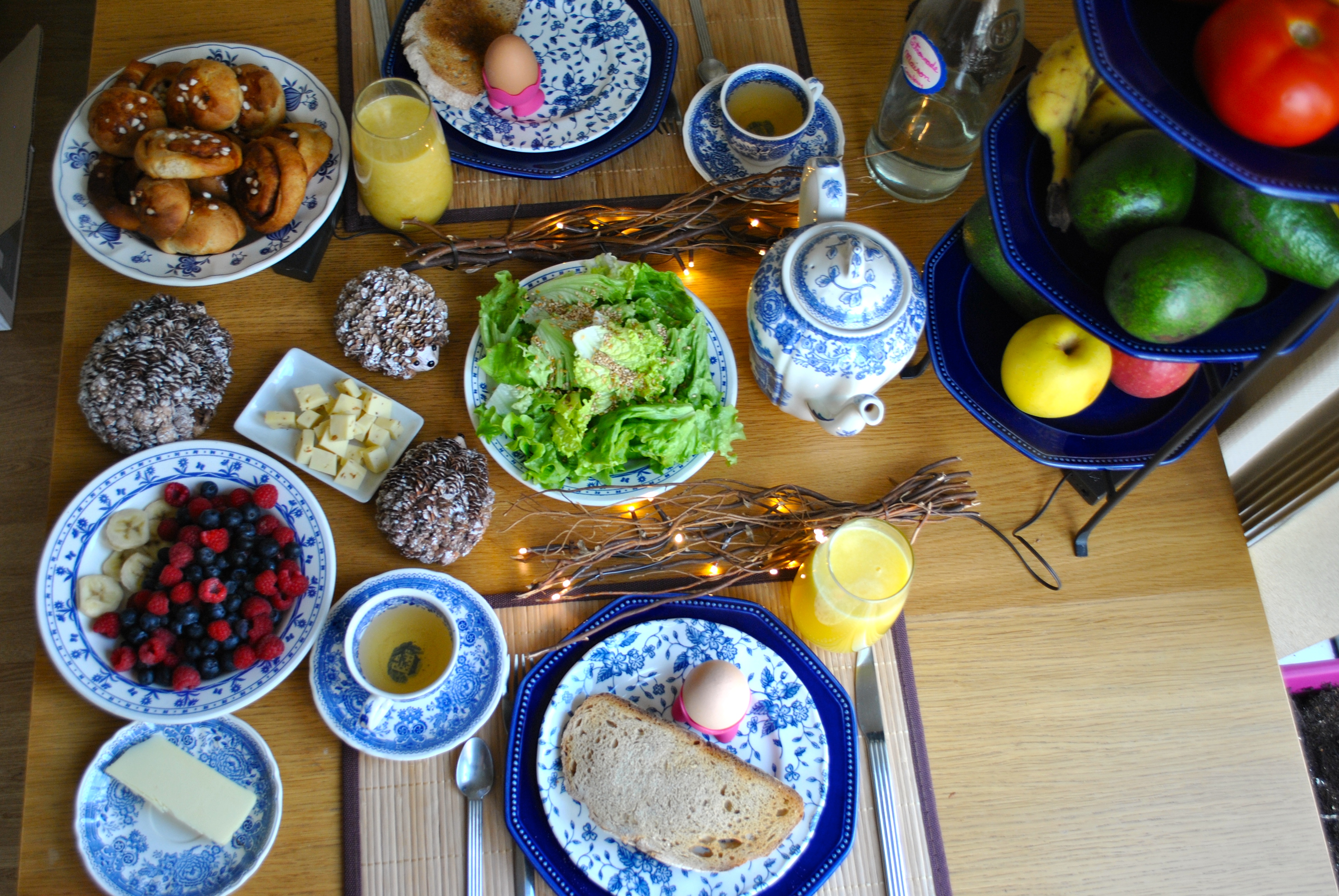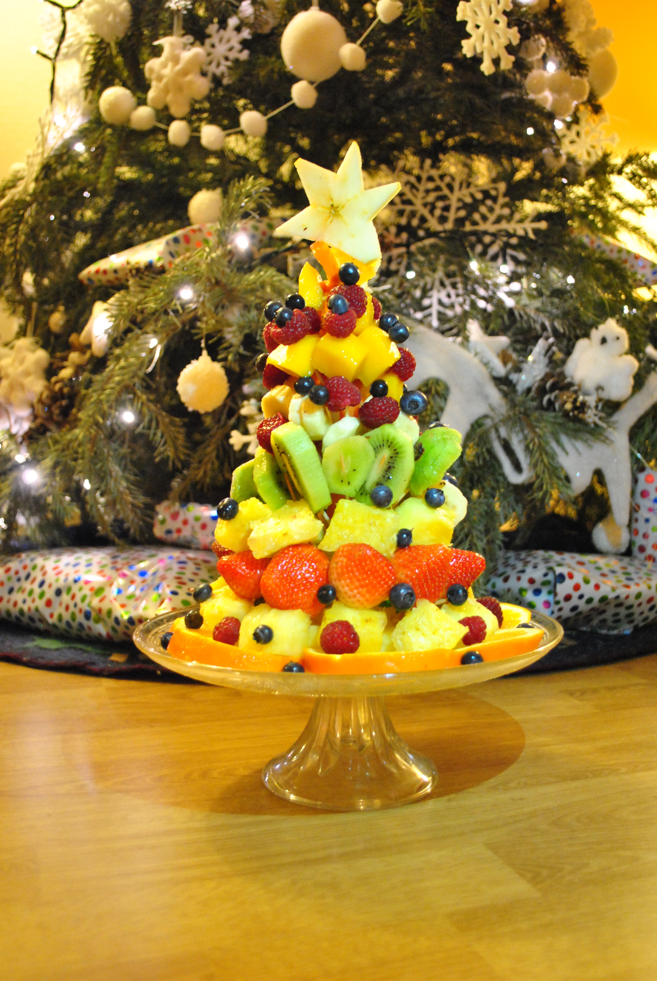 Voici quelques photos de notre brunch avec ma vaisselle achetée chez Emmaus, et une photo de notre sapin de Noel de fruits. C’était très marrant à faire, la base est une carotte plantée dans une pomme, après il faut plein de fruits coupés en morceaux à piquer dans la pomme et la carotte avec des petits piques à brochettes et des cure-dents.