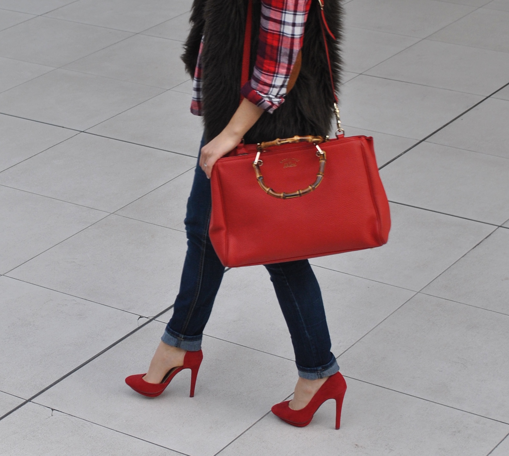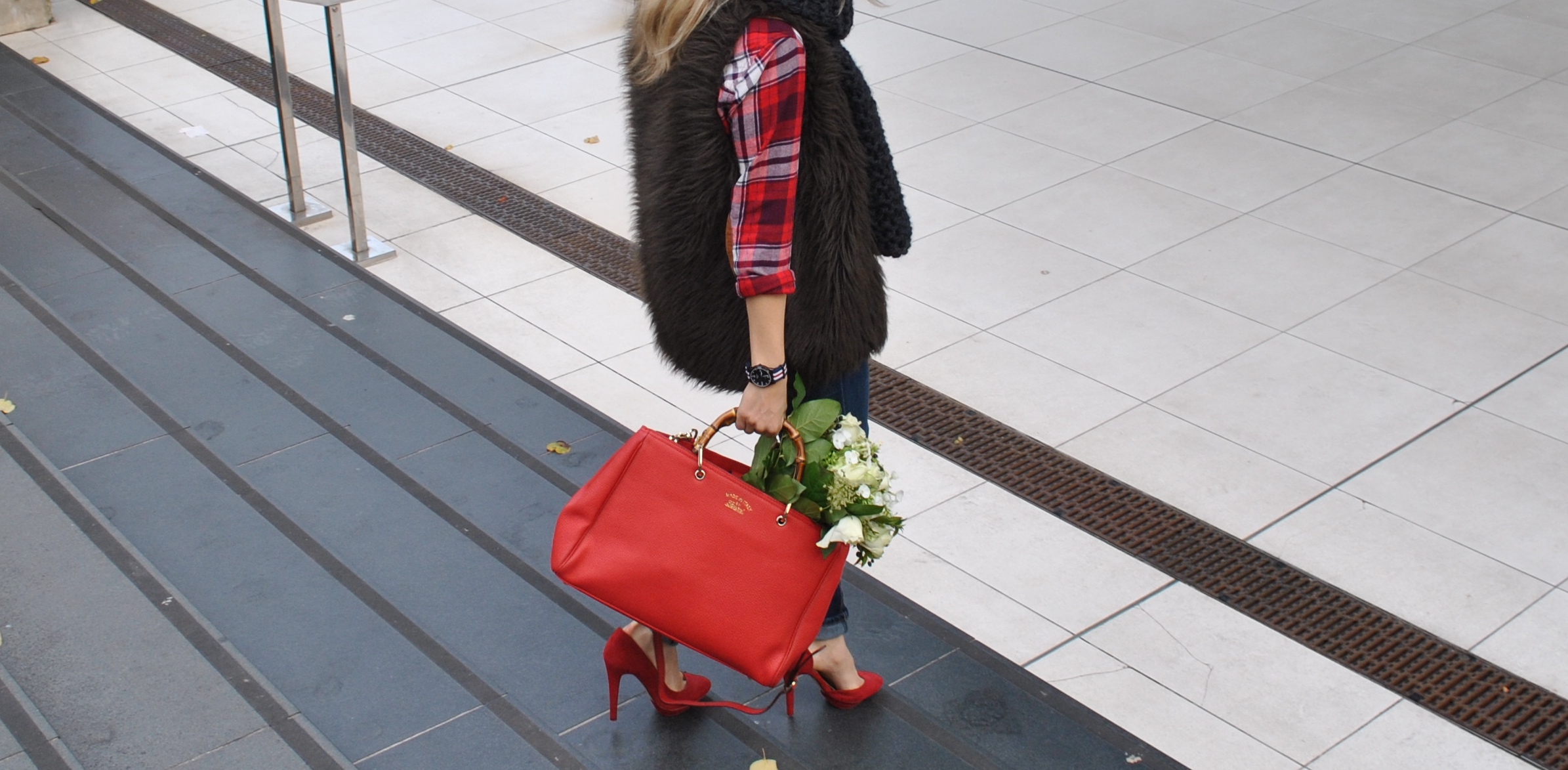 Voilà une tenue « post anniversaire » avec ce nouveau sac à main rouge Gucci que mon cher et tendre m’a offert, j’aime beaucoup son cuir souple et ses hanses en bambou qui le rende spécial.