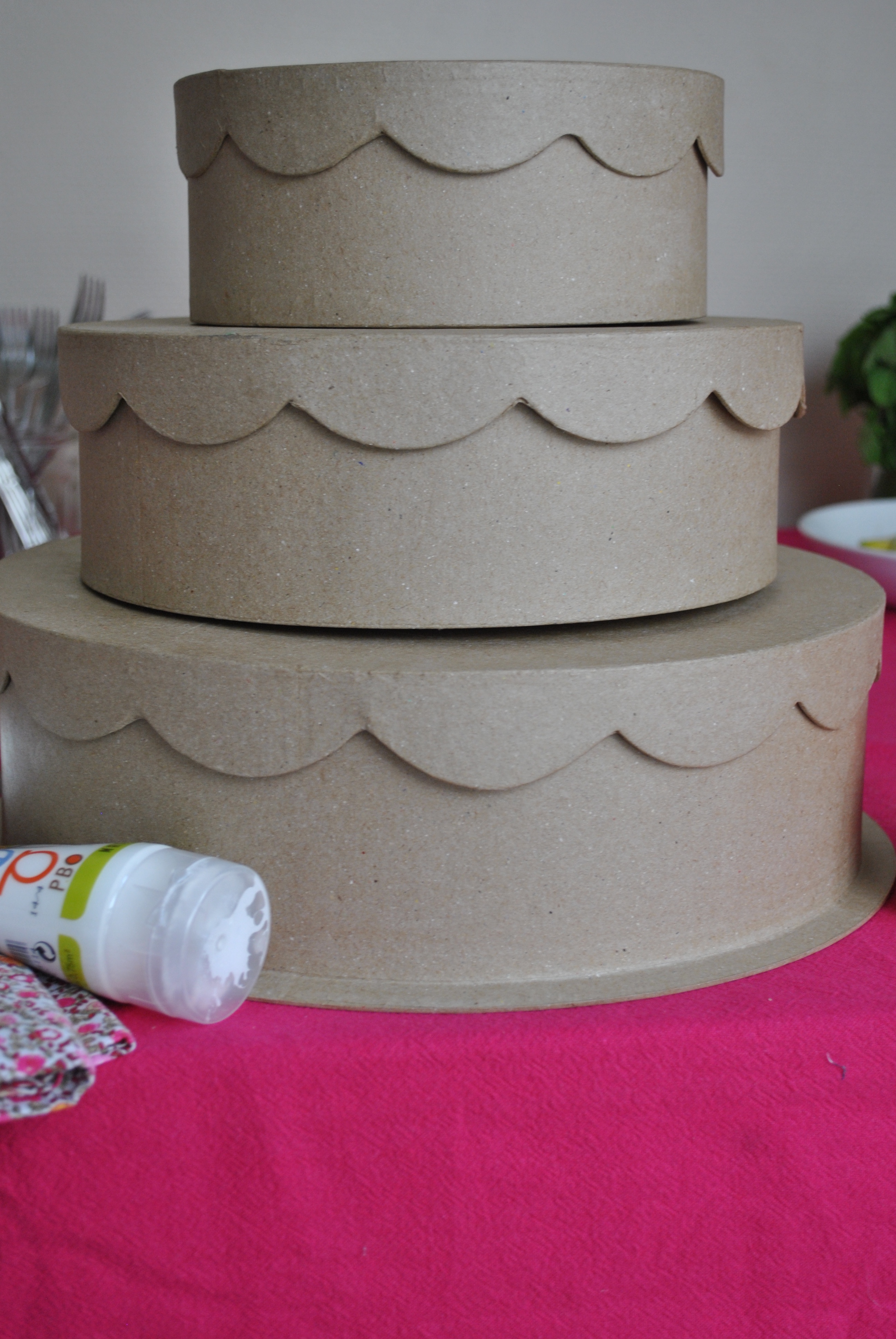 I painted the top in white so it looks like a cake. I will show you the finished result soon!