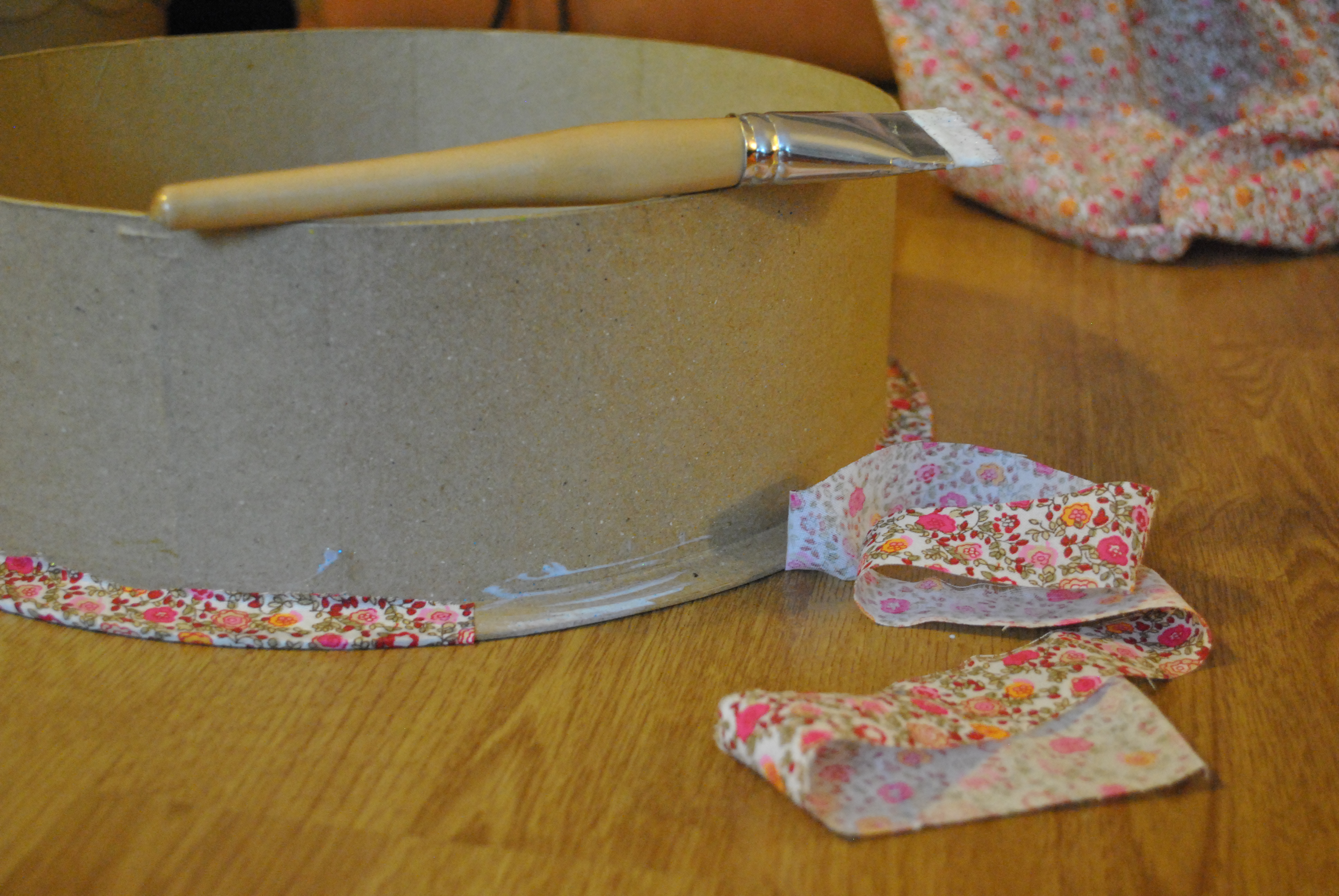 I was worried that the fabric would look weird on it, and it wouldn’t stick nicely, but I was wrong ! This was so easy to make ! I used my all purpose glue with glitters ( of course … ) and I glued the fabric with a lot of glue. I had to made a fabric strip for the bottom and then I covered it with the big piece so it doesn’t show.