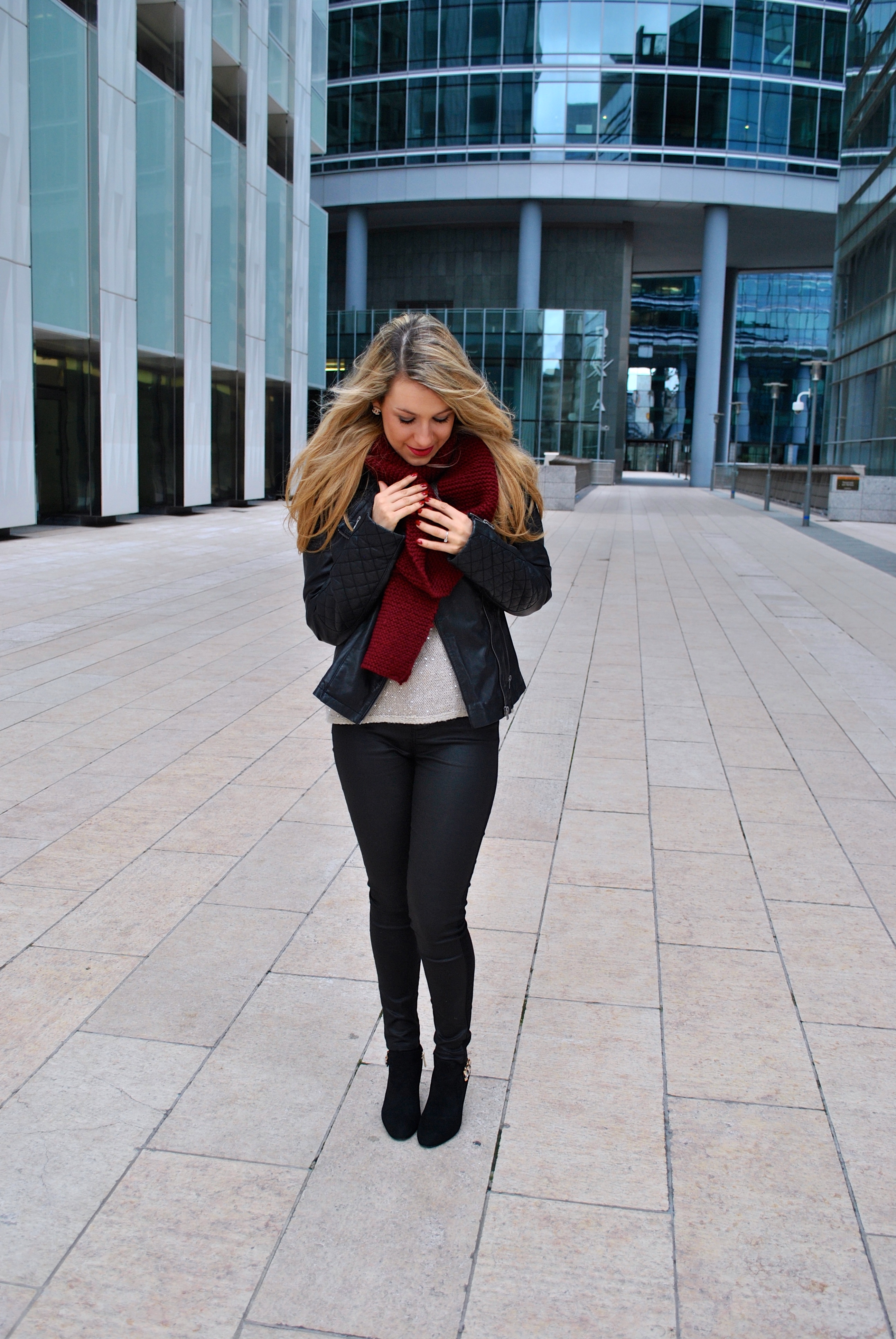 Voilà une tenue pour affronter l’hiver parisien. Un pantalon bi matière trouvé à Forever21 avec des bottines à talons font un look parfait pour aller travailler tout en étant au chaud et confortable. J’ai fini l’écharpe que je tricotais la dernière fois, et je suis bien contente de pouvoir la porter maintenant ! Les photos ont été prise par ma soeur, je suis contente de pouvoir partager des moments avec elles, maintenant que nous ne vivons plus ensemble. J’espère qu’un jour je pourrais avoir deux petites filles assez rapprochées pour qu’elles puissent faire les 400 coups comme nous !