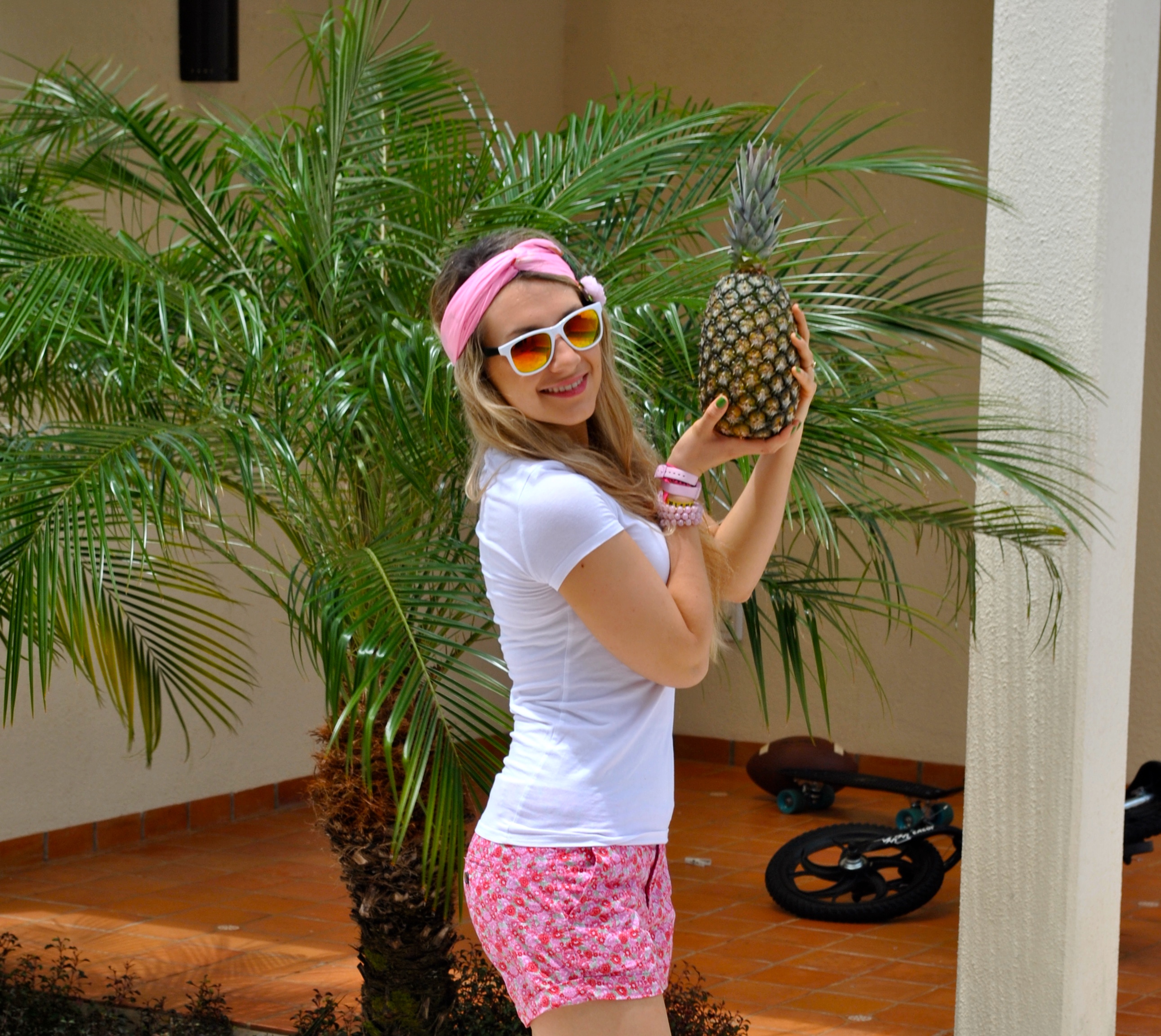 This is the outfit when we visited my brother’s school. We went there and the students were so cute, they all took their chairs outside to sit in front of us, to ask us questions about France. My brother is 17 yo but the school he goes is from 7 to 17 years old, so there were some cute little boys and girls curious about France and our habits. We went to the supermarket to buy ingredients for our French diner we decided to make for the host family, I bought this huge pineapple and couldn’t help, I had to take a picture with it.