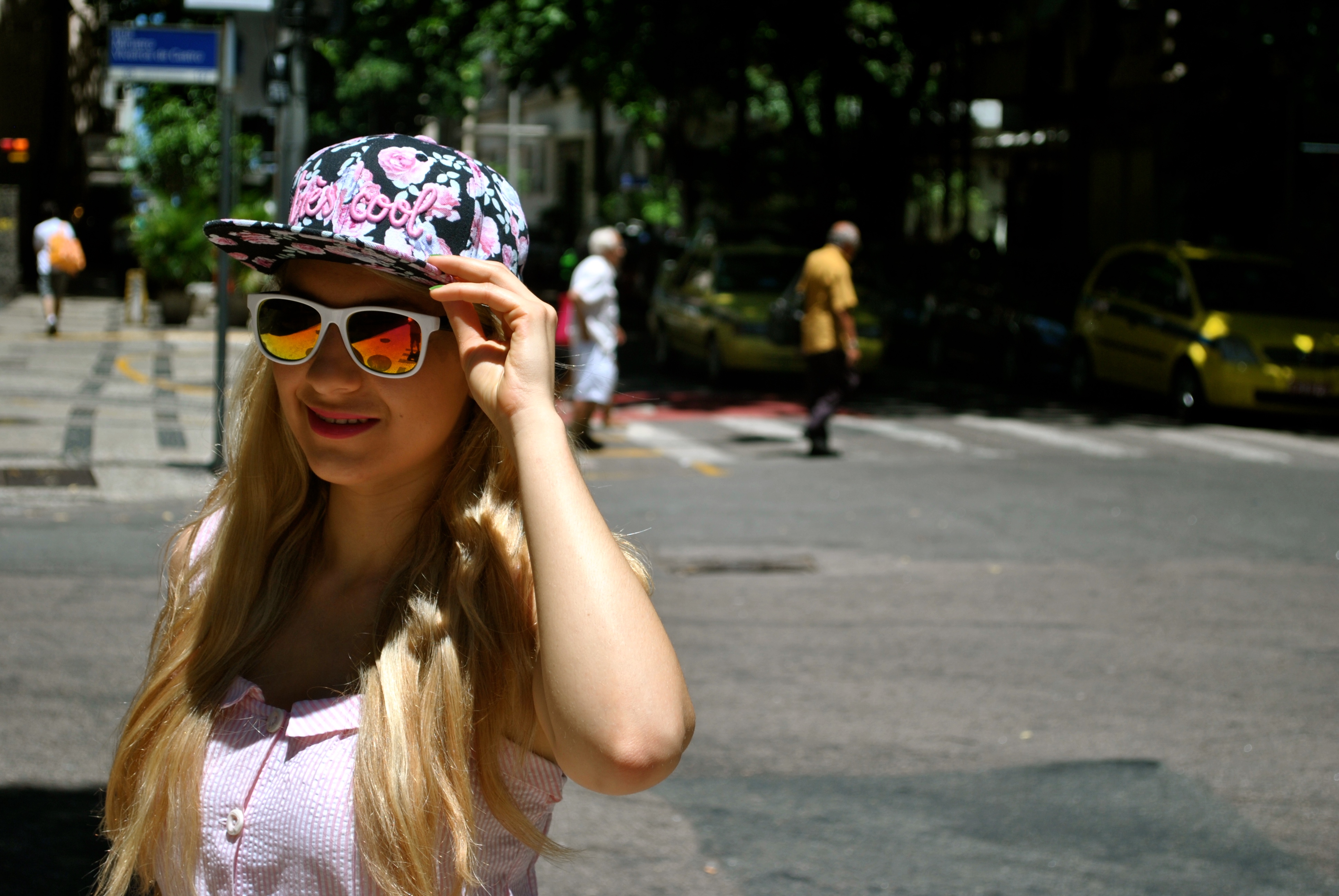 This is one of my comfy outfit I took for visiting the sightseeings of Rio. An easy romper, thrifted, just like I love them 🙂 I paired it with white mocks for walking around and my « très cool » cap ! I found the cap at H&M on sales before going to Brazil and it was like $7 because obviously no one buys a summer cap in the middle of winter, it was perfect for me. The Salvador da Bahia bracelet are from my brother. That day we went to see Christ the Redeemer and the Sugar Loaf, it was wonderful ! The weather was perfect so we could have a clear and sunny view for both. It was a dream to see the bay of Rio from the top !