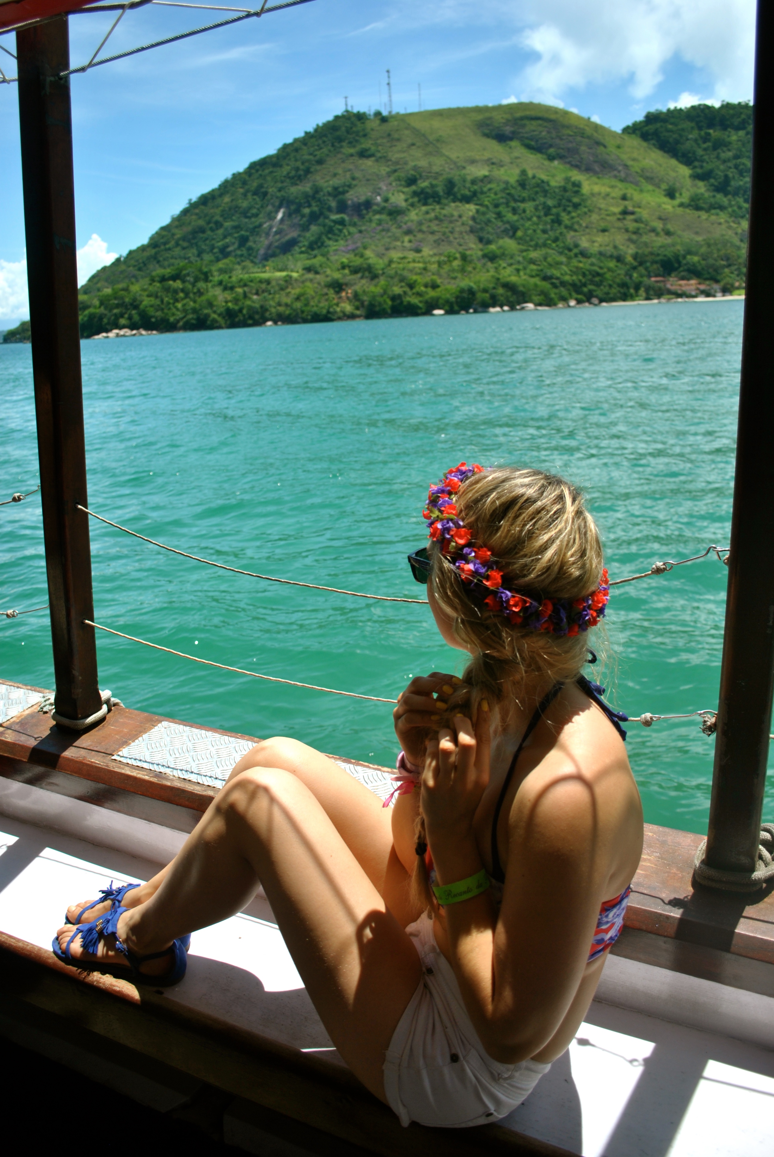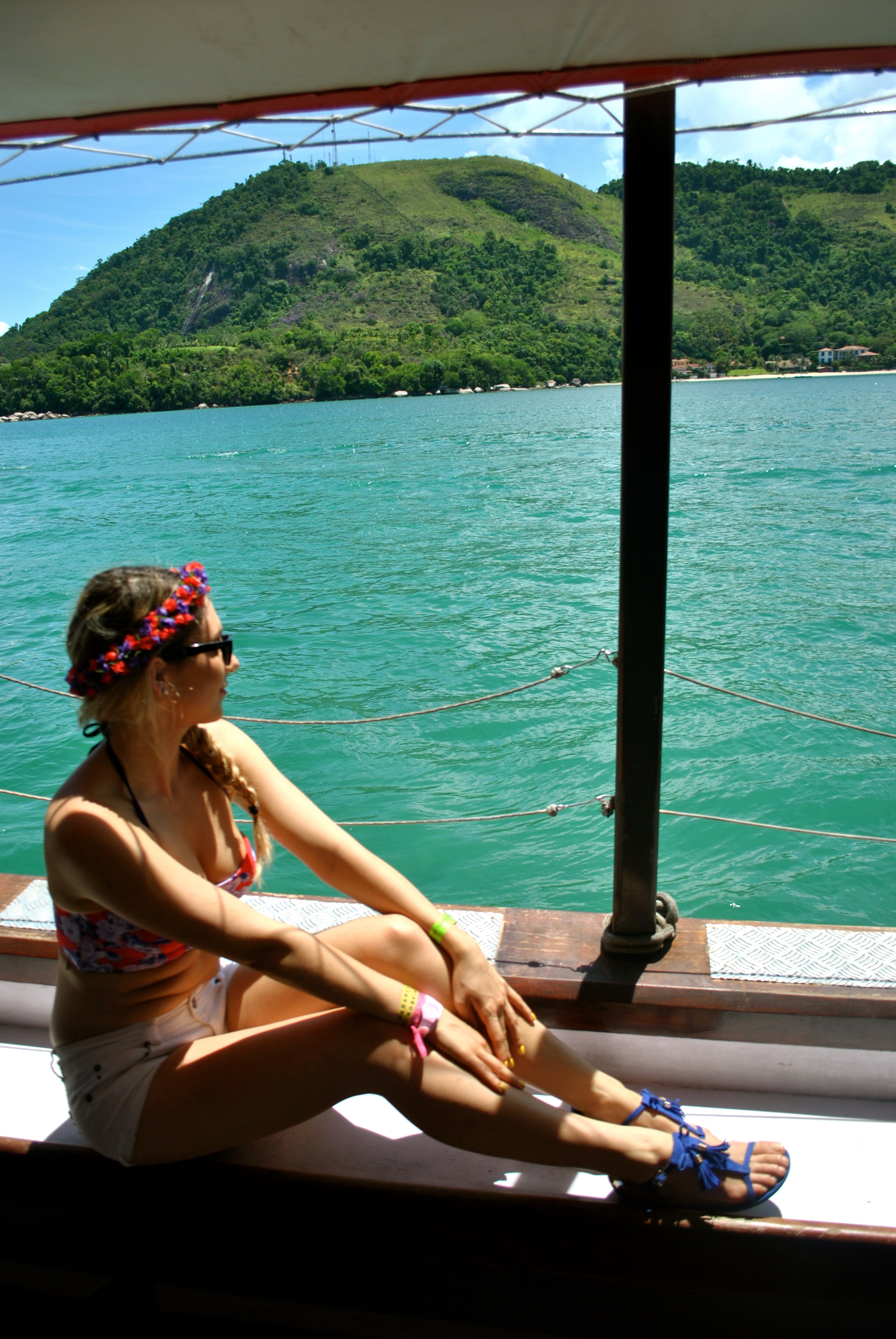 Andra dos Reis is a magical place, we went there to visit the small islands around , Ilha Grande was the biggest one of then ( I can’t remember the names of the two other islands we visited …). We enjoy the ride very much. For this day I pick my two pieces swimsuit from Asos. I found few days before a fabric flower crown on from a street vendor in Sao Paulo, so I went for a side braid with the crown. Perfect for swimming and not having my hair all over my face.