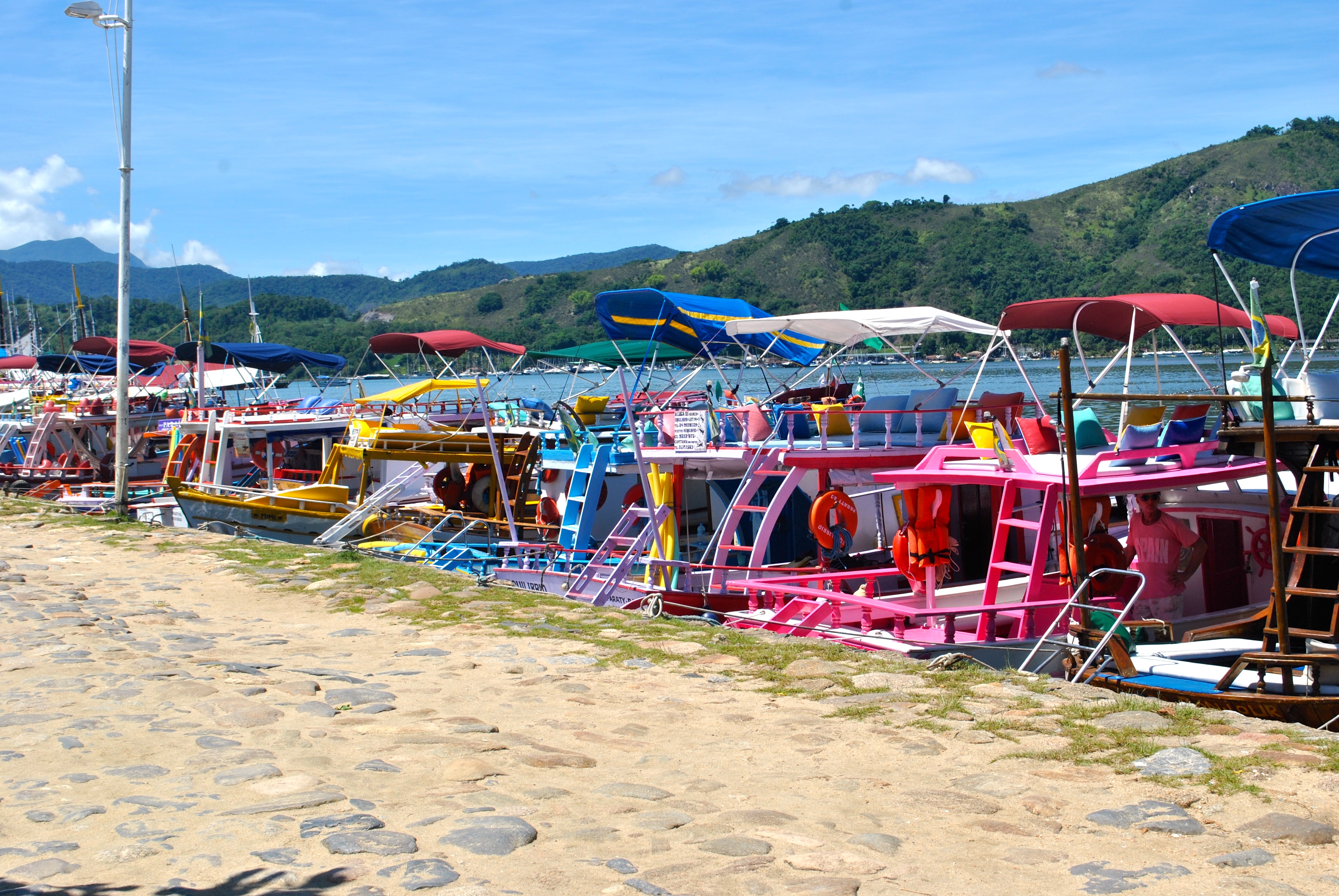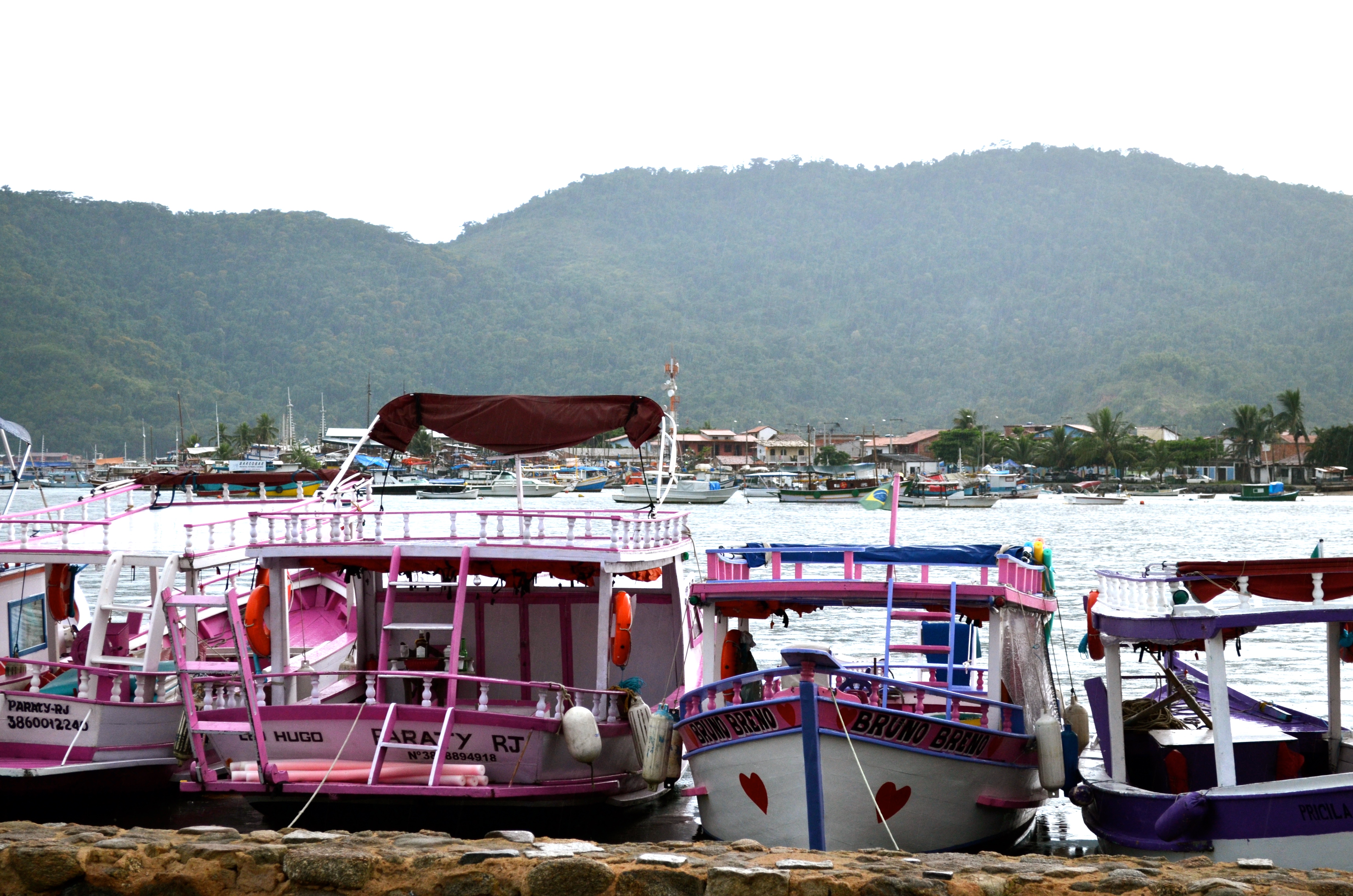 These are my photos from Paraty, Brazil. As you can see this was a wonderful place to visit ! I love every minute we spent there ! We stay in a Pousada in the center of the historial place. We went to amazing restaurant where the food was sofisticate and delicious. We had caipirhina ( once again !). During day time we went to different islands on a pink boat. You can imagine how excited I was when we found those colorful boats on the harbor ! They were so darn cute ! We went for the pinkiest one of course, our sailor was nice and took us to many beautiful places. And I know that will sound annoying especially if you are in a cold place right now, but the sea water was sometimes too warm ! Can you believe it ! we didn’t feel fresh inside of the water, we were just dying for warmness !