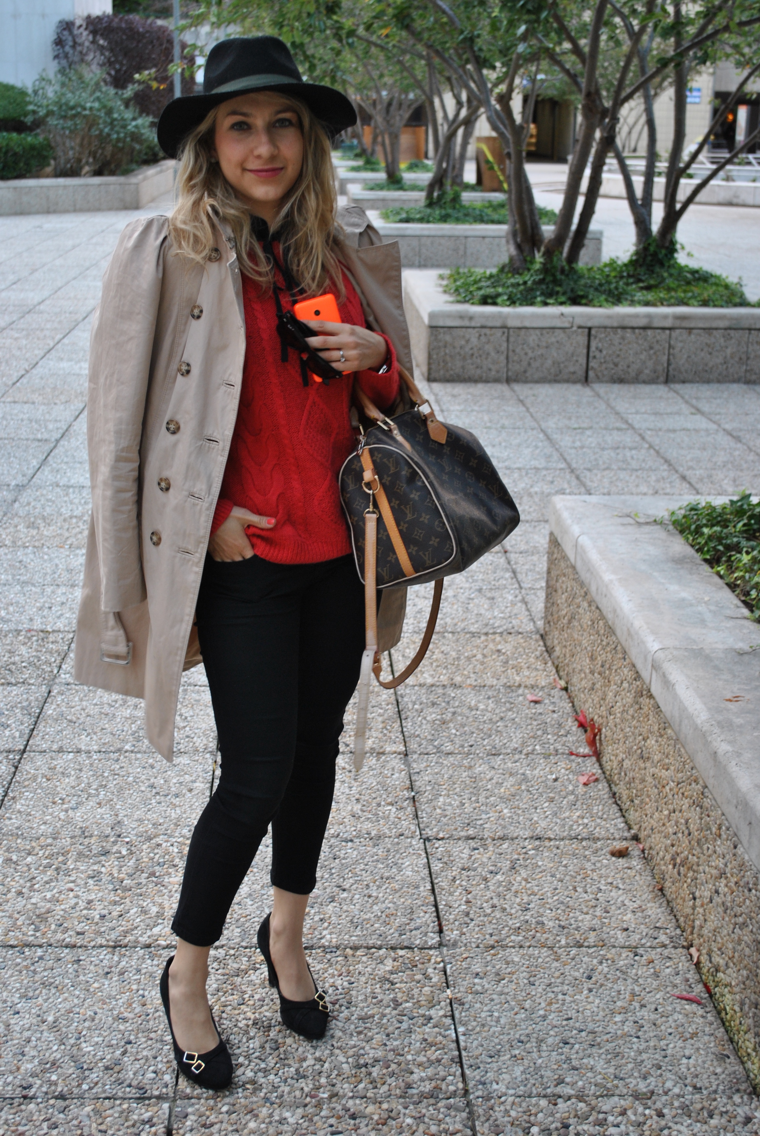 My outfit of the day is a mix between winter and spring, because right now the weather is in the middle of the two. So I better leave the house with a warm sweater in the morning, and one of my favorite is this orange one, because it brings color to my day and you can spot me one mile away in the metro, everybody wear dark colors too much !