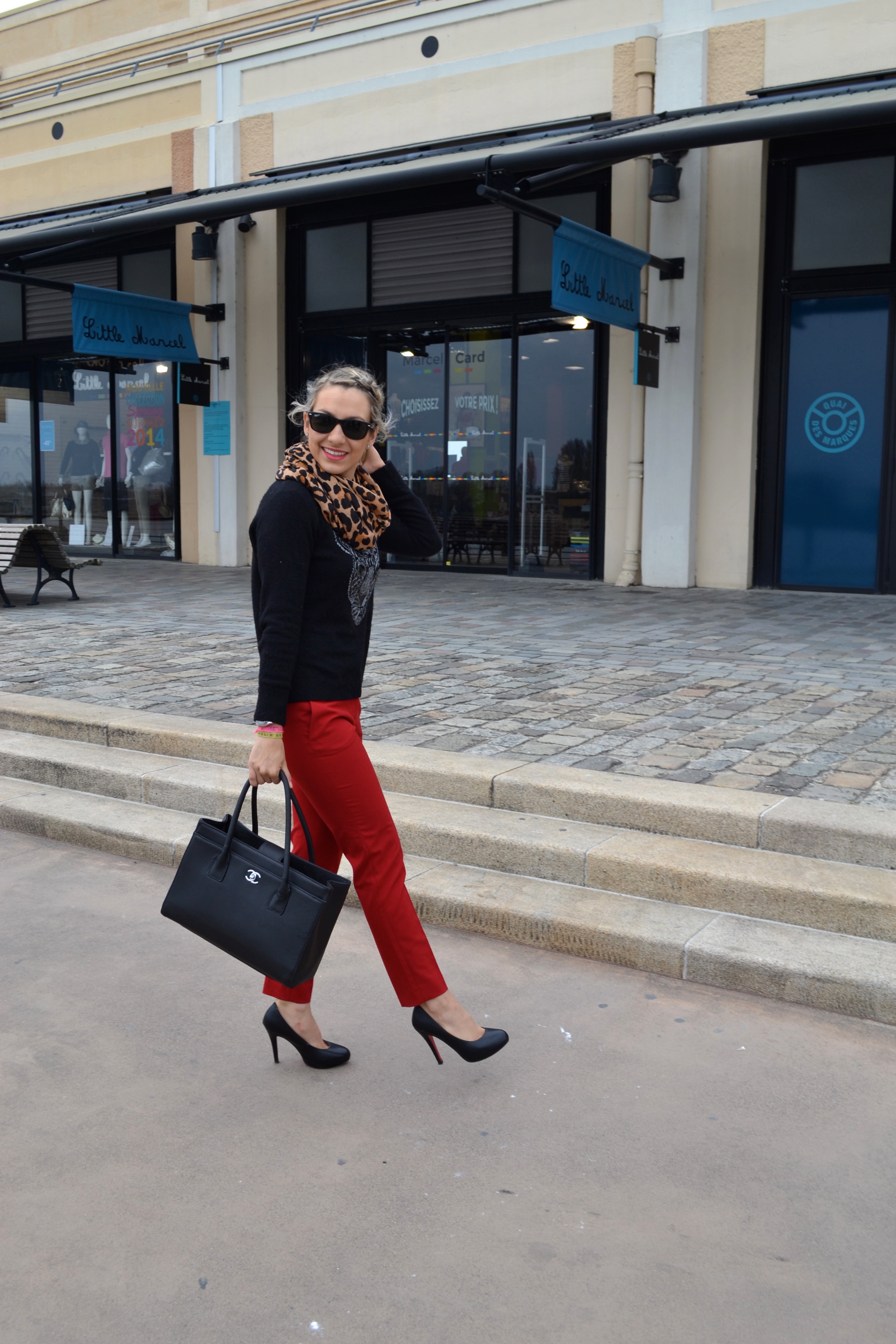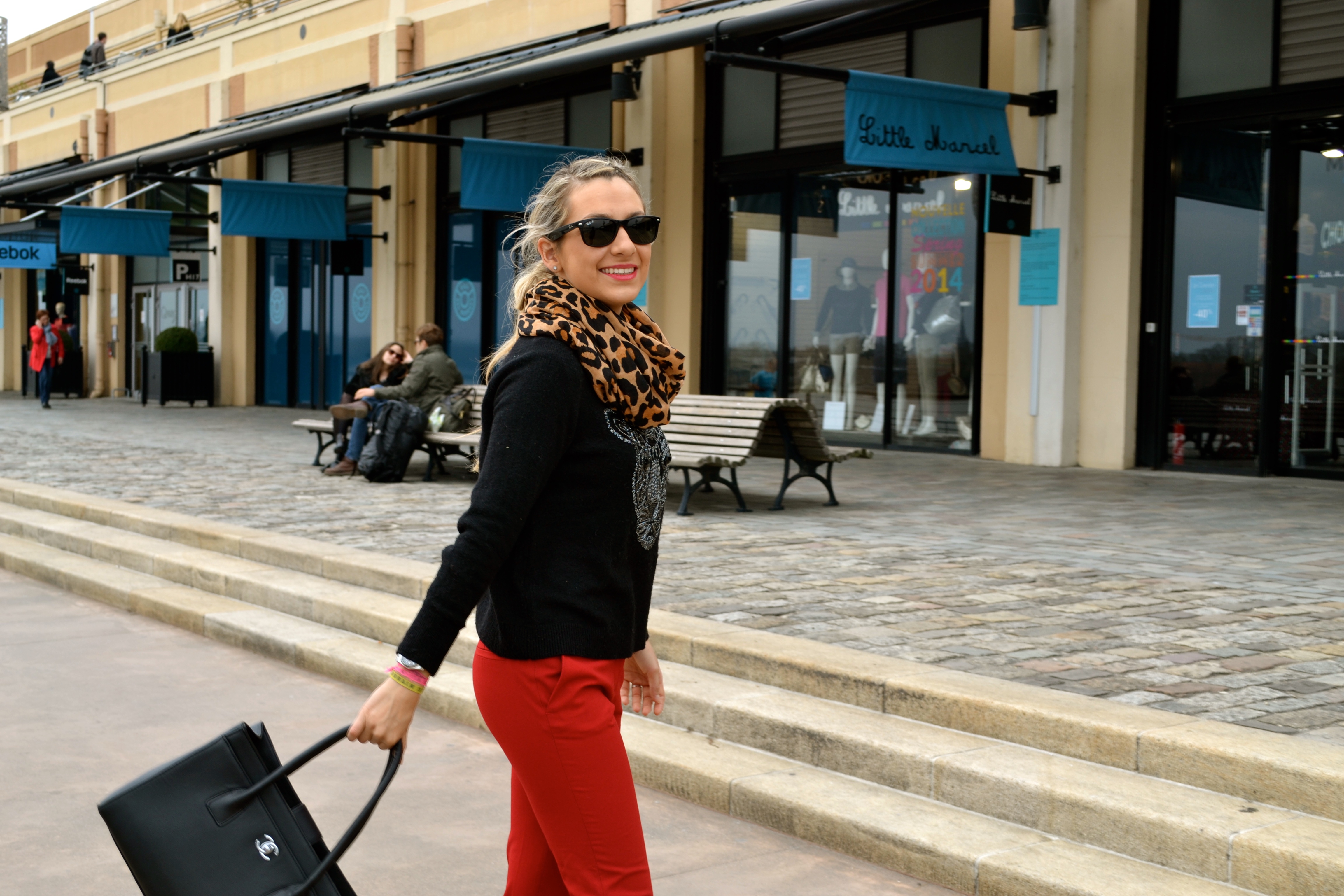 I’m back to Bordeaux for the week end and this was my outfit to go shopping with my sister and our Brazilian exchange student Béatriz. The weather was quite cold, so I choose my tiger sweater from this winter, I was dying for a Kenzo one but the price made my reluctant and I was glade I found one similar in HetM for less, the scarf is also from HetM. The pants are from Zara, this red is such a nice color for Spring, I can’t wait to wear it with a shirt shirt !