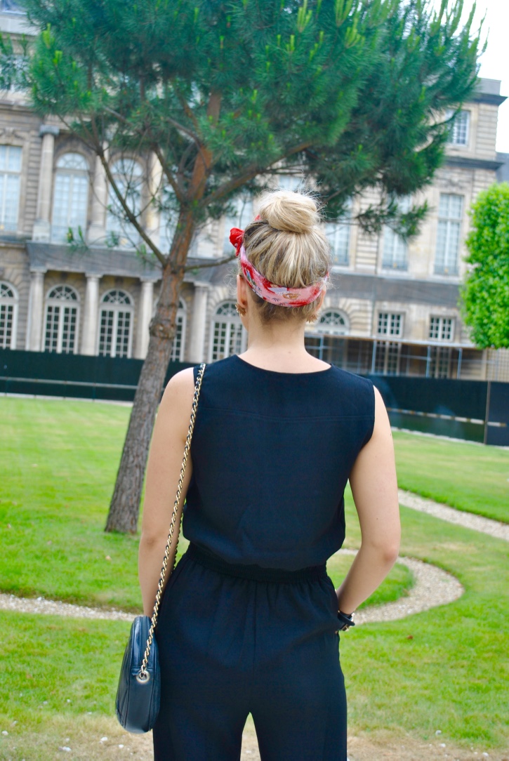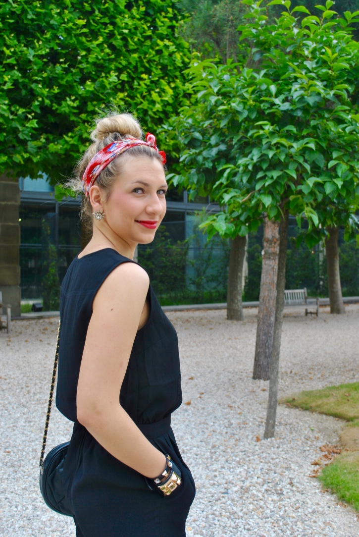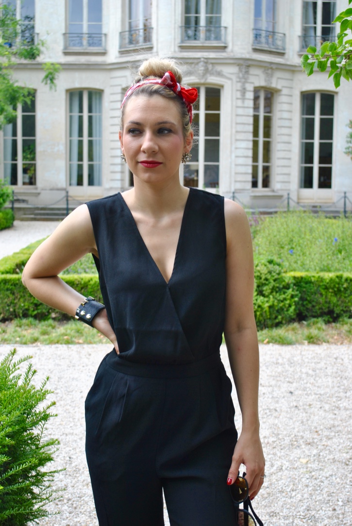 J’adore ce look, la combinaison te va très bien, et je trouve que le bandeau dans les cheveux casse l’effet trop stricte d’une combi 🙂