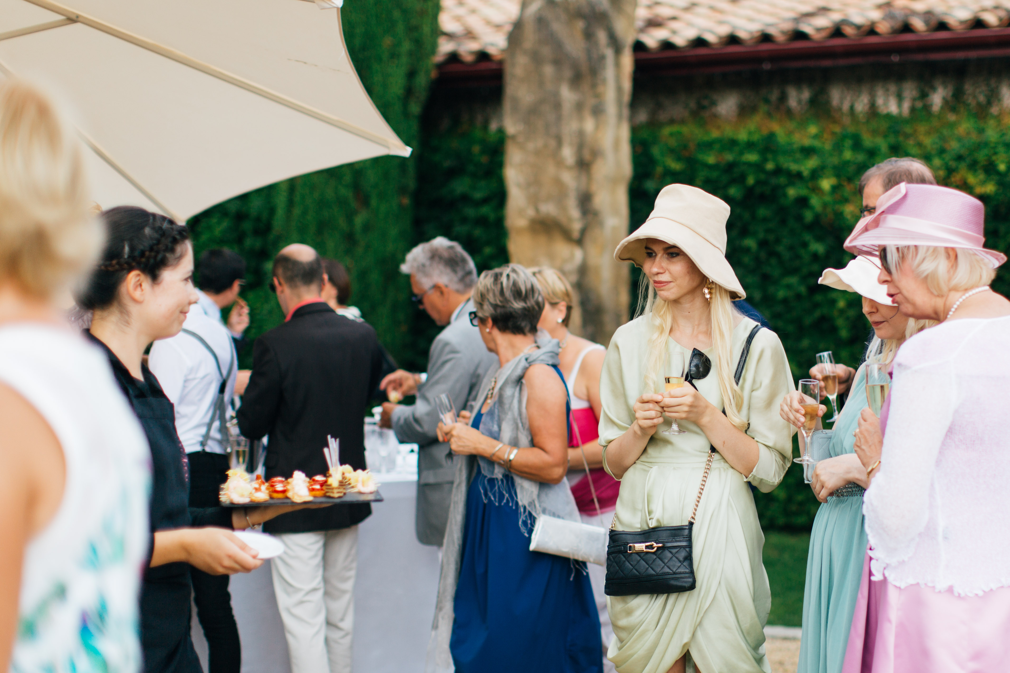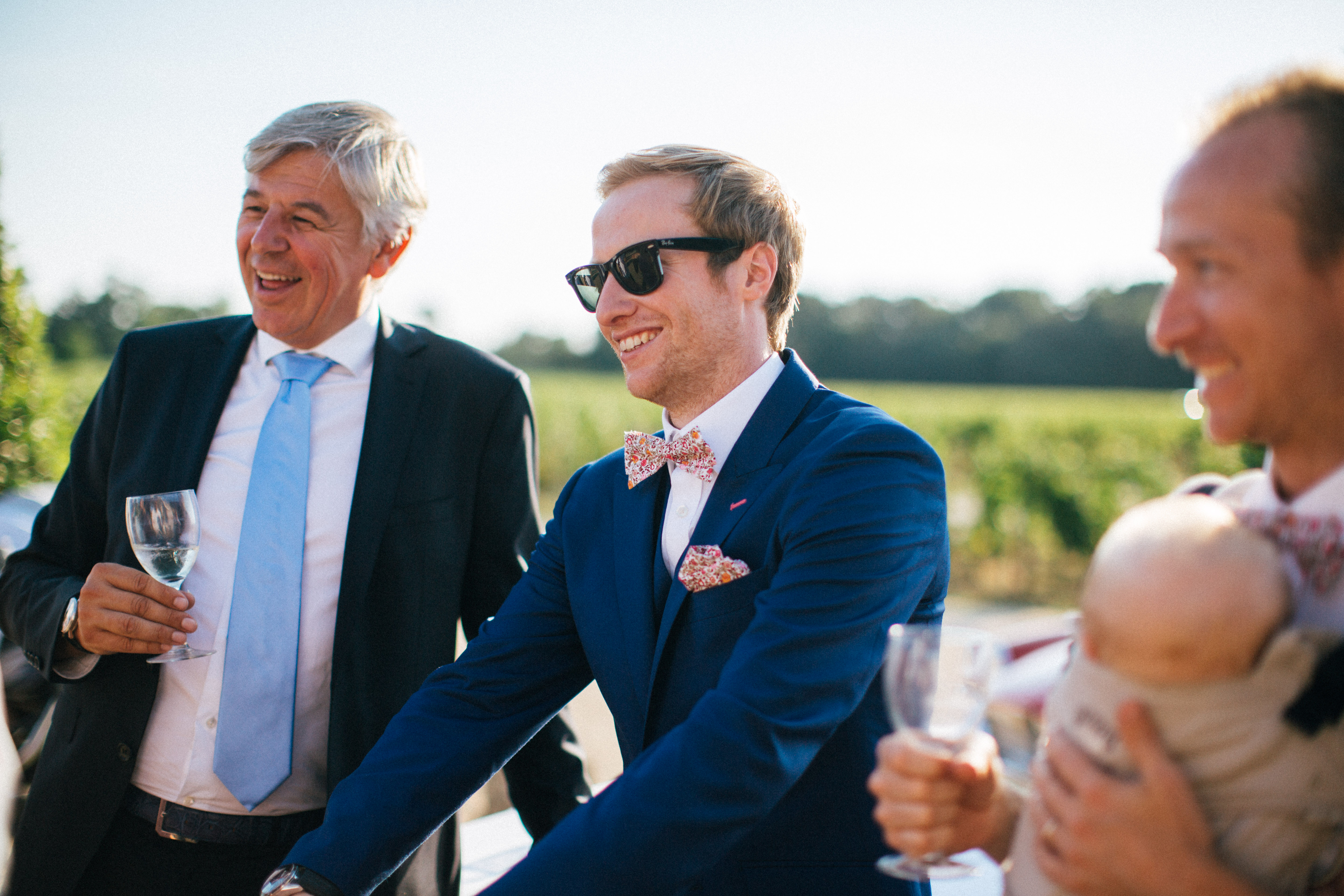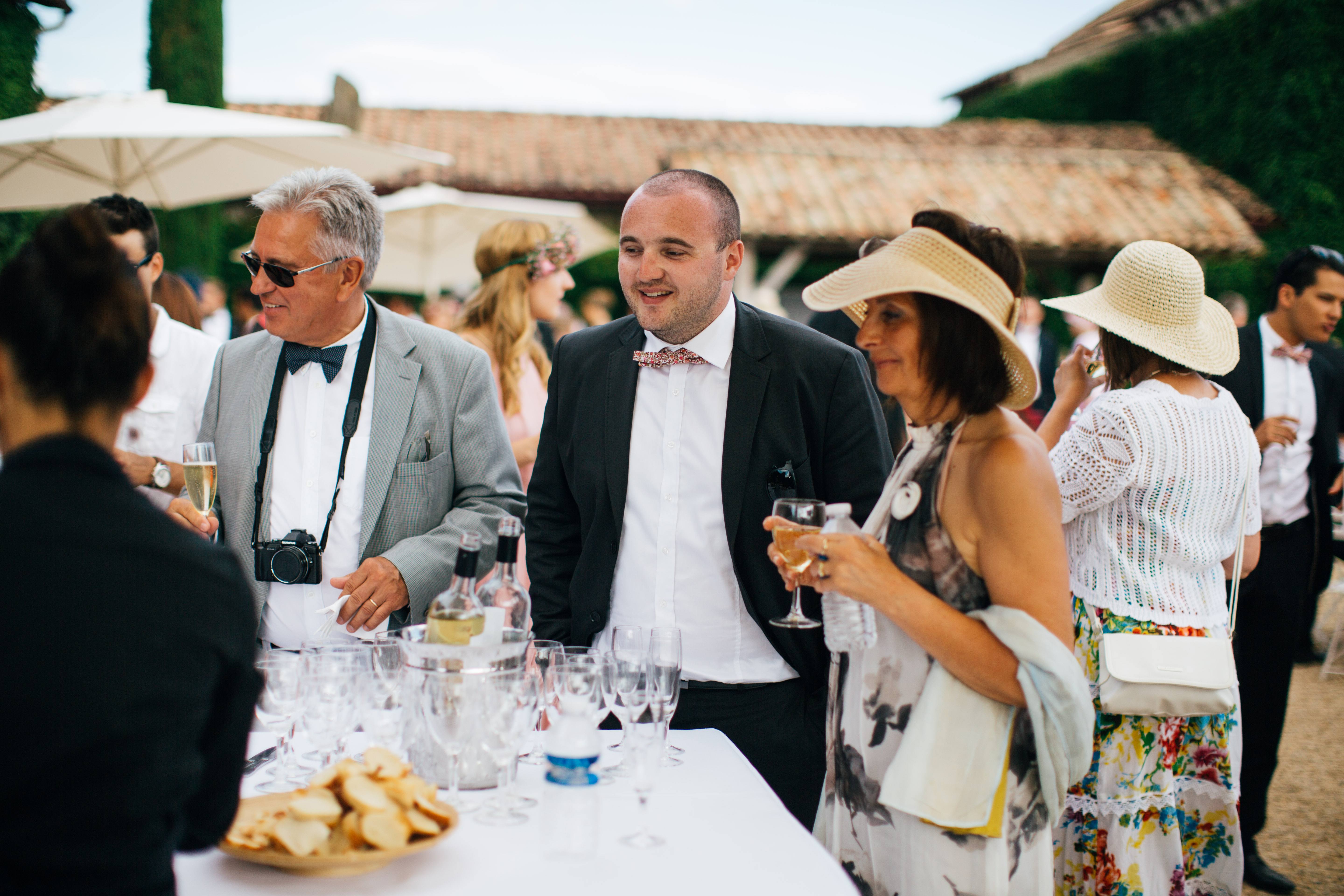 So let’s pick up where we were, after the ceremony we left by car, to have our theatrical exit, but also to have few minute for ourselves right after the ceremony, so Yoris could catch the emotion and the feelings on our faces. So we basically drove and turn around the building so he could meet us on the other side. We had our first couple photos, it was so great to huge each other and kiss. After 10 min we went back to the ceremony place so we could welcome everyone. It was so hot and I had a great idea, in case of hot weather I planned to use a wheelbarrow, as a bottle handler. It turns out great, so if you have a wedding/birthday/party and you need fresh drink, a brouette can be very handy and perfect to transport bottles of any drinks. We actually put the wheelbarrow in the cold room of the catering kitchen and we just brought it to the ceremony so people could drink iced cold water. And let me tell you it was more than needed ! Lulu’s dad let me borrowed his wheelbarrow and he even painted it in silver and white so it fits in theme.