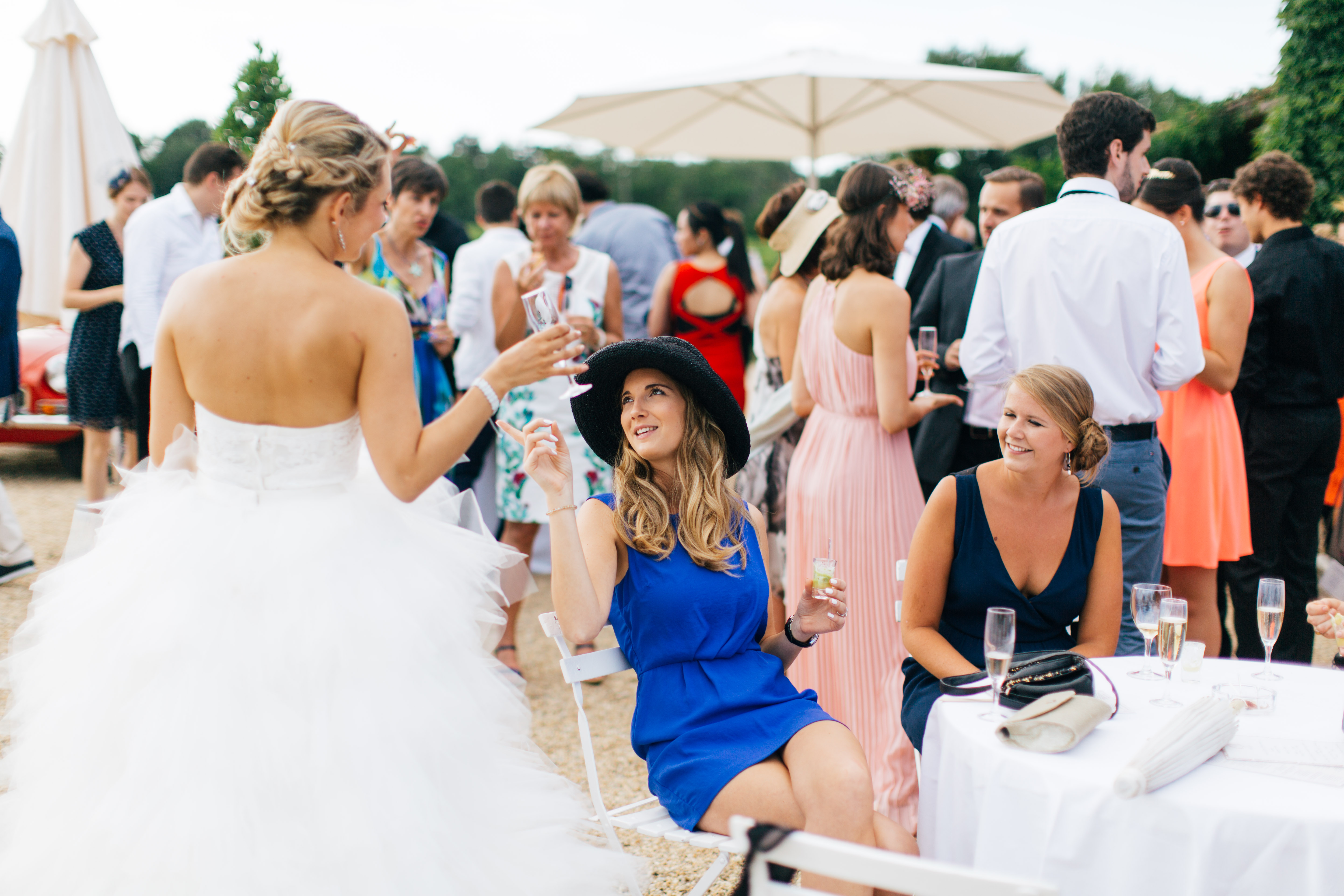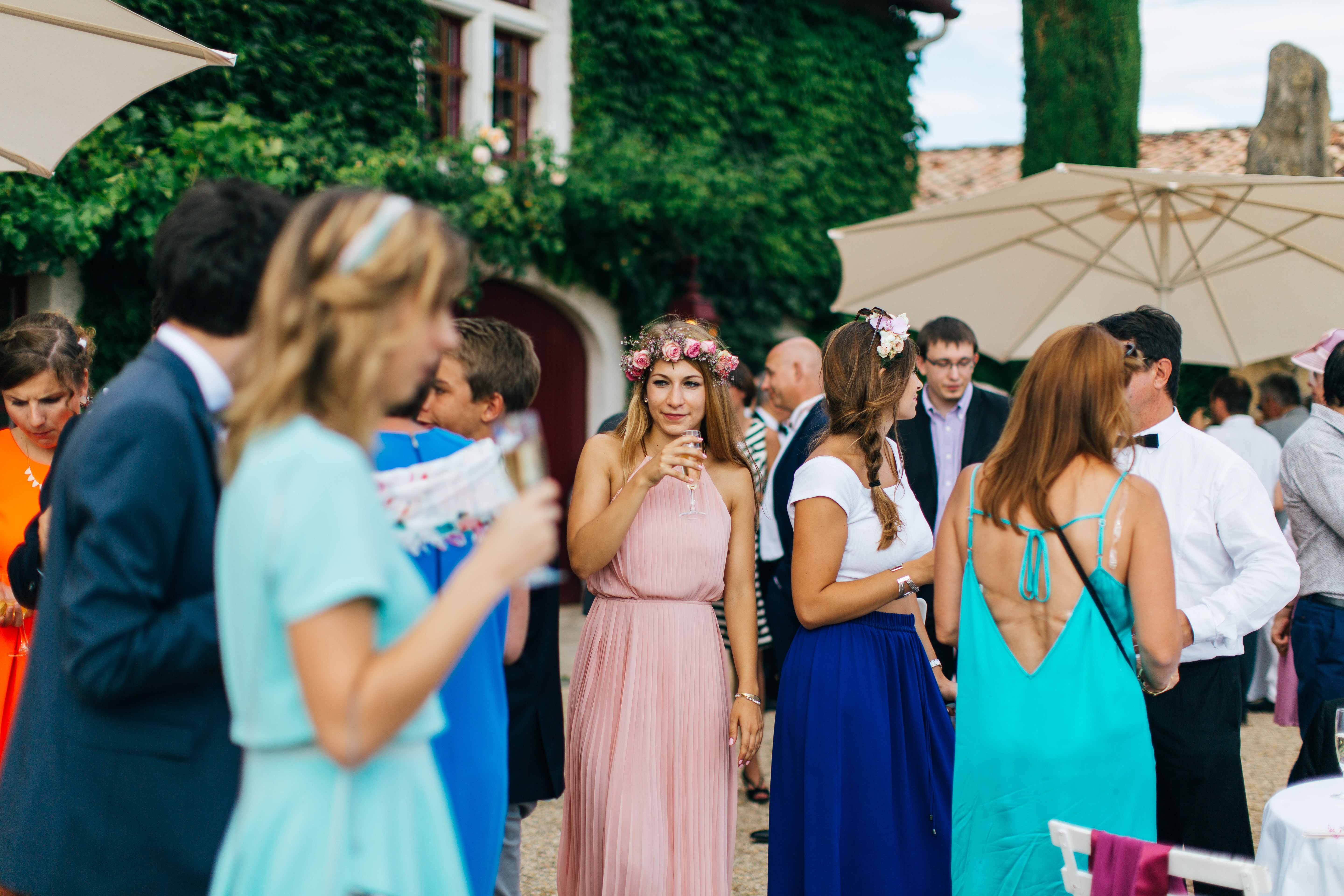 We had the cocktail for a long time from 6pm to 8:30pm but it was so sunny and it allows us to talk with everyone and even sit for a little while ! Maybe it’s not the same everywhere but in France we usually have guests for the cocktail party and then a smaller number of people for the diner, so we had 150 guests for the ceremony and cocktail and 110 guests for the diner, we usually keep diner for family and close friends.