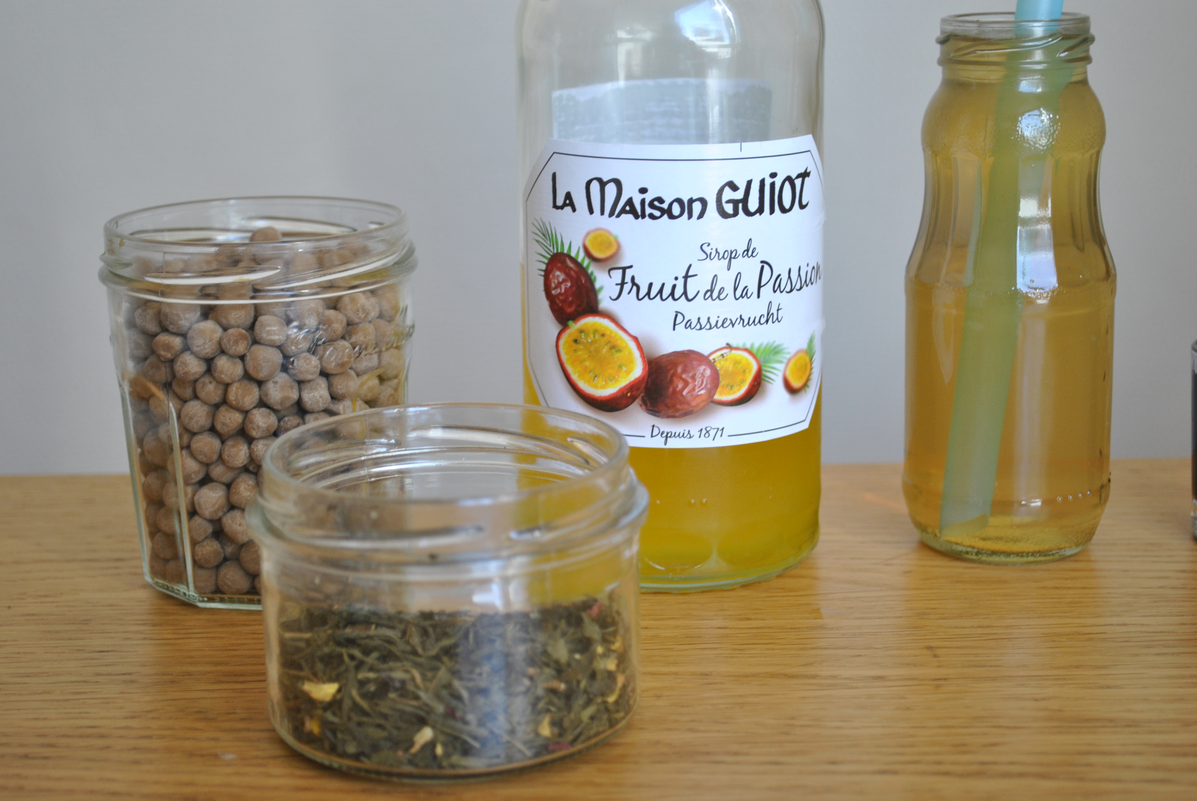 First I cooked my bubbles ( you can find it here and here) it’s quite long to cook while they were cooking I made rose-passion fruit green tea that I infused quite a long time because you want your bubble tea to be tasty and if you put ice cubes the flavor might fade a bit.