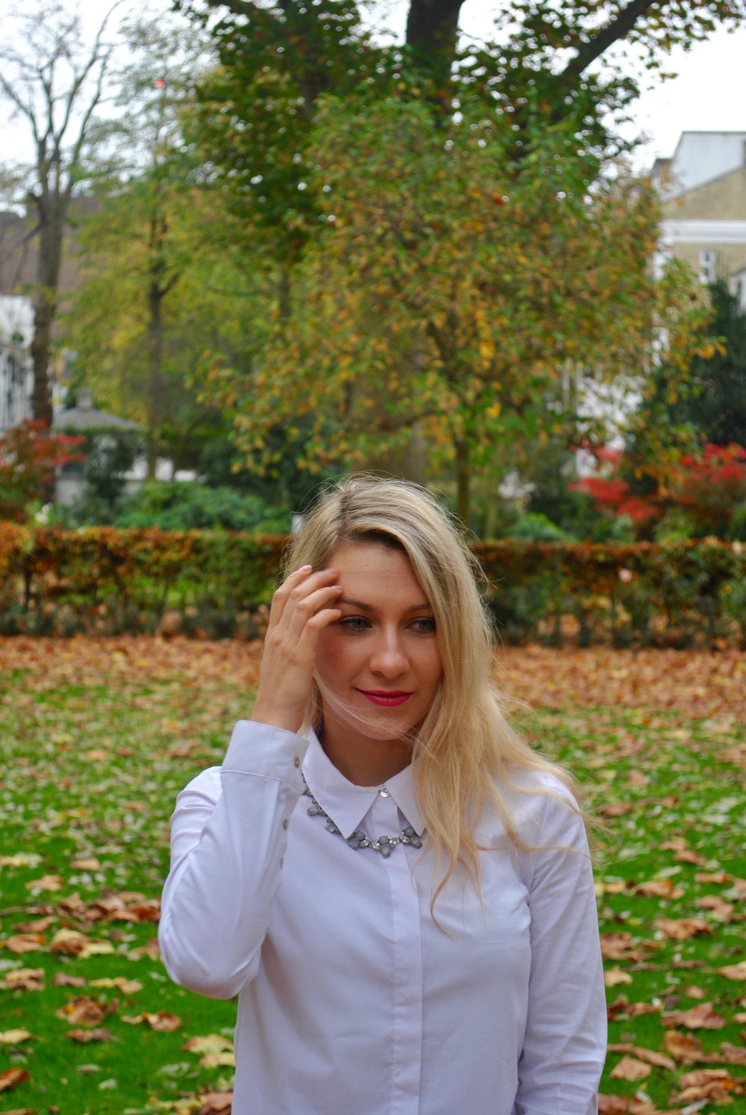 Today’s outfit is all about Winter in London ! As you can see the leaves on the photo, this is real now, and Christmas is almost here ! The days are short, and it’s hard to take good photos with so little light, so we would usually go to the park or the garden to enjoy the daylight. I’ve had many interviews for job lately, so I wanted to share one of my outfit for interview or to look good in the office.