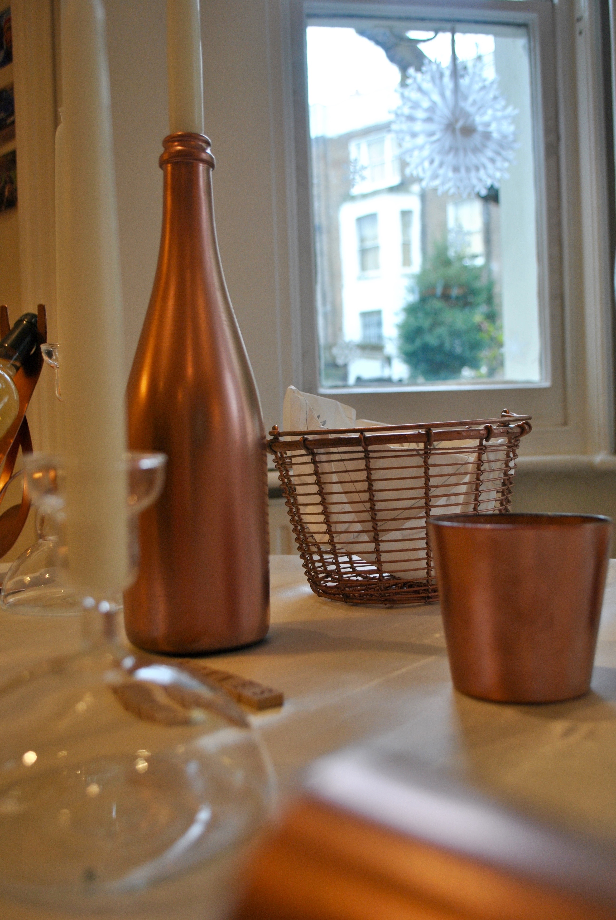 Today I’m excited to share with you my Christmas table decoration and DIY ! This year I wanted to try something new, when I lived at my parents’ we used to have two sets of Christmas ornaments : red/gold, blue/silver. So I guess I wanted to do something different this year, so I decided to go for copper, white and glass. Copper is such a beautiful vivid color, but as its not as popular as silver and gold, so it was hard for me to find ornaments that were not out of my budget. After looking through Pinterest I choose to buy a nice spray can of copper and make the ornaments myself. Once the spray paint was bought it was so easy for me to go to cheap stores ( poundland is my favorite !) and just buy any ornaments and spray paint it.