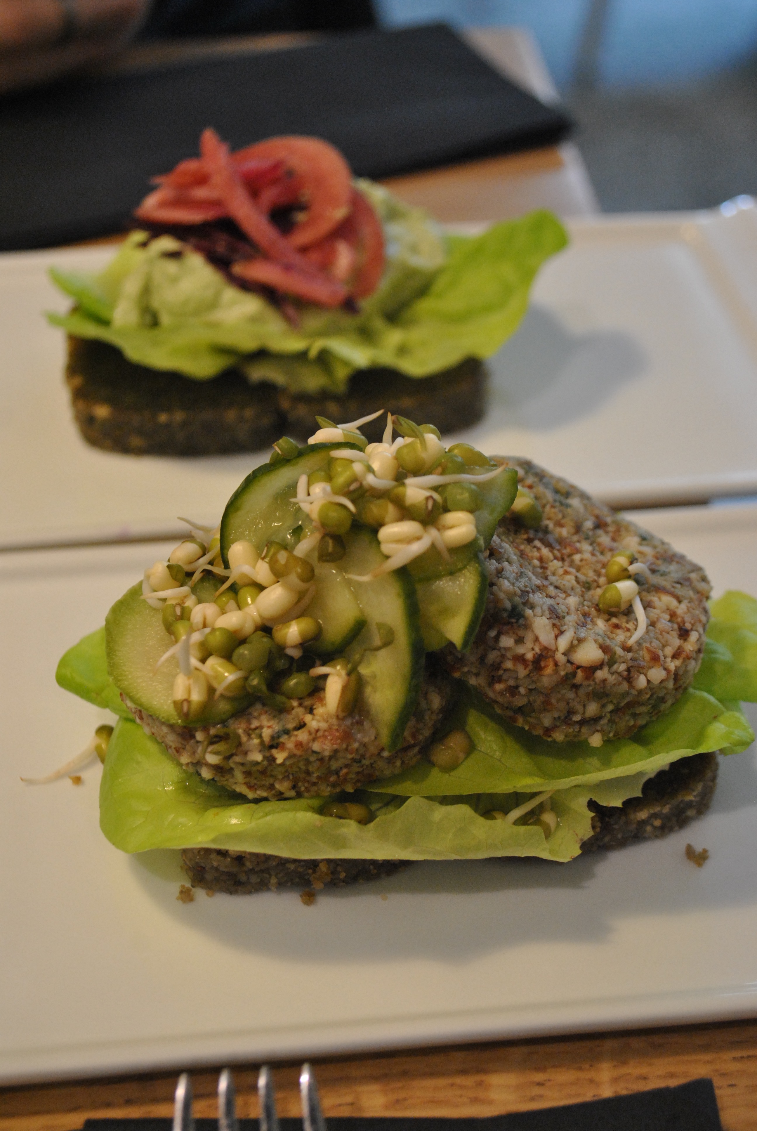 Le dimanche nous avons eu du mal à trouver un restaurant qui nous plaisait, il y avait beaucoup de restaurant de style français ou italien dans le quartier où nous étions. Nous étions beaucoup moins chanceux que la veille. Jusqu’à ce que l’on trouve sur un joli square de maison colorées, un restaurant végétalien, SimplyRaw. Depuis le temps que je voulais tester, c’était l’occasion ! Alors j’ai pris Monsieur sous le bras et hop nous voilà assis devant un menu où il n’y a que des aliments végétaux, sans lactose, sans gluten, sans sucre et sans cuisson, oui oui. Et vous savez pas quoi ? On avait tellement plus faim après notre entrée et plat que nous n’avons pas goûté aux cheesecakes qui avaient l’air délicieux ! Qui l’eu cru ! Nous avons eu un burger aux haricots avec de l’avocat et des graines germées. Ce genre de cuisine est très intéressante lorsqu’elle est faite par quelqu’un qui maitrise bien ces ingrédients atypiques. Alors si l’experience vous tente, n’hésitez pas, on ressort de ce restaurant rassasiés et étonnés à la fois.