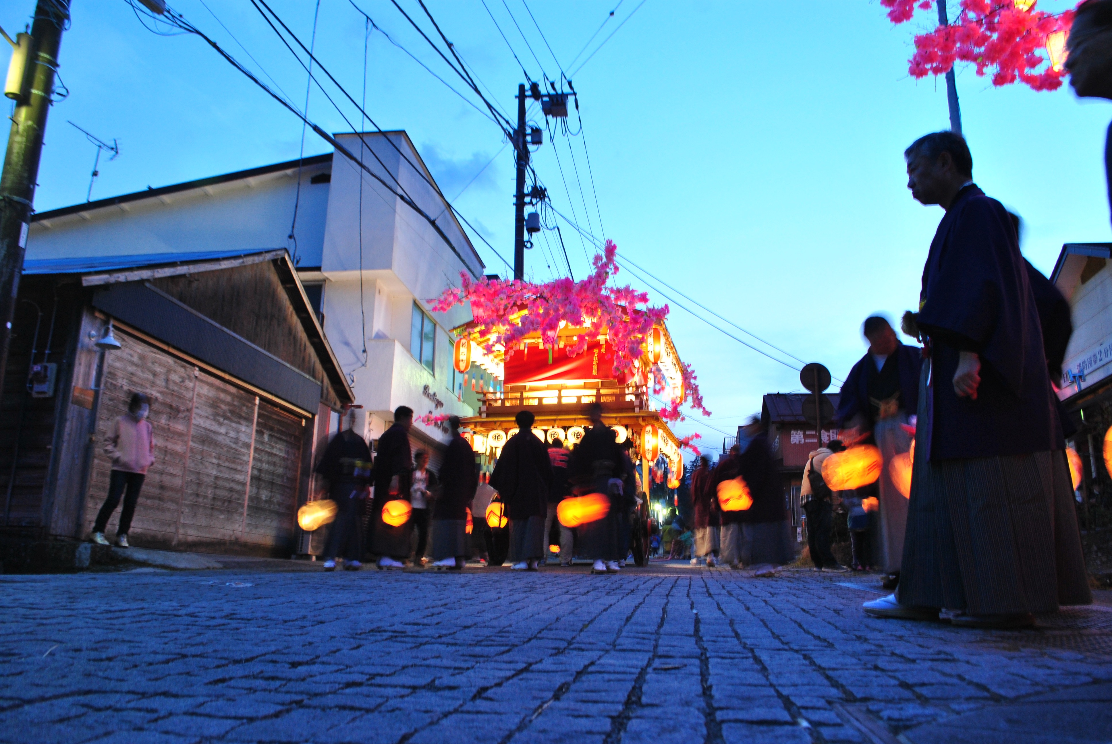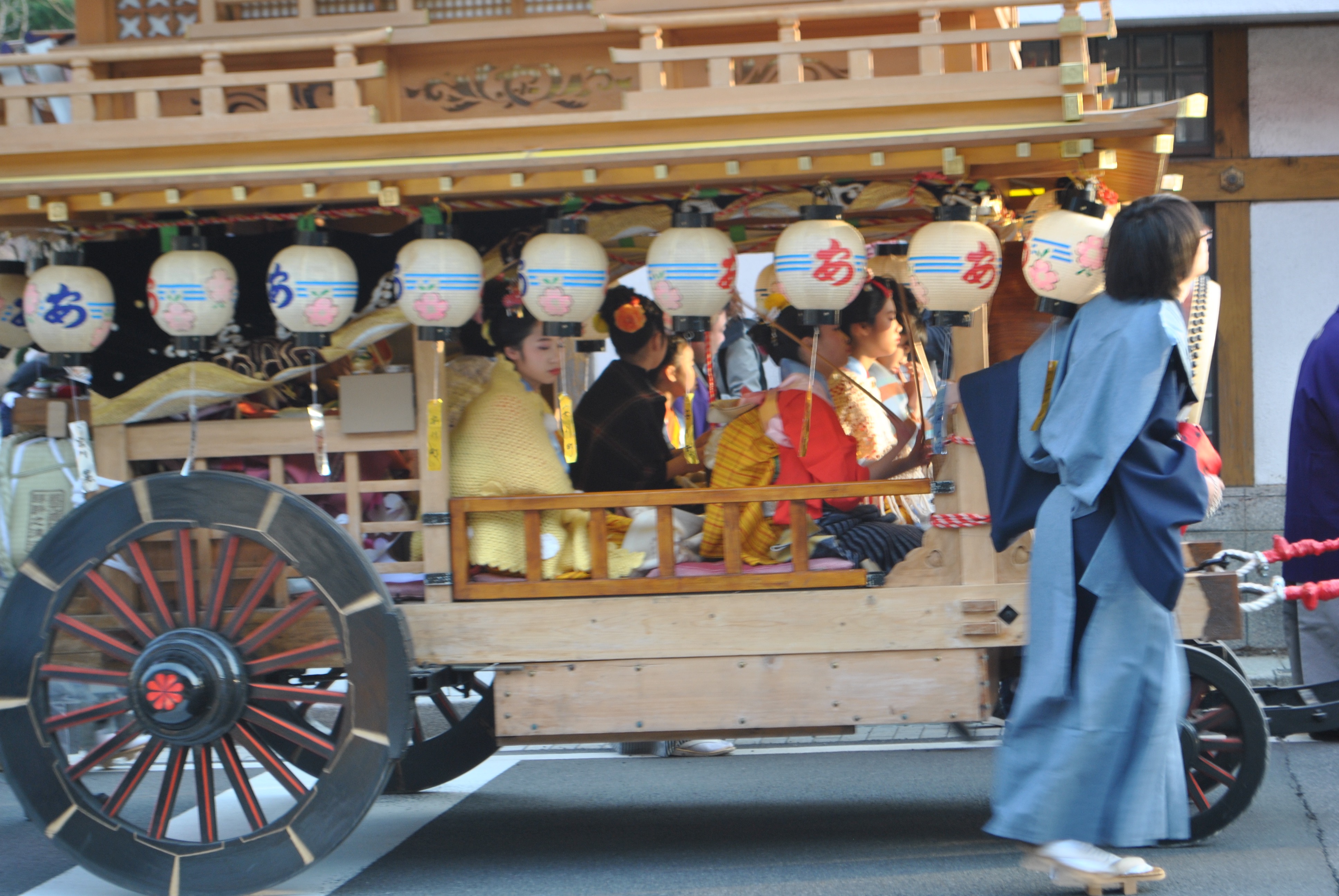 Les temples étaient fermés certes, mais nous sommes arrivés en plein festival du printemps ! Nous sommes partis un peu la fleur au fusil, sans regarder le programme de la journée, résultat nous avons croisé des chards tirés par les villageois complétement par hasard ! j’étais un peu émue de voir tous ces gens habillés en costumes traditionnel, je crois que c’est à ce moment là que mon cerveau à réaliser que j’étais au Japon !