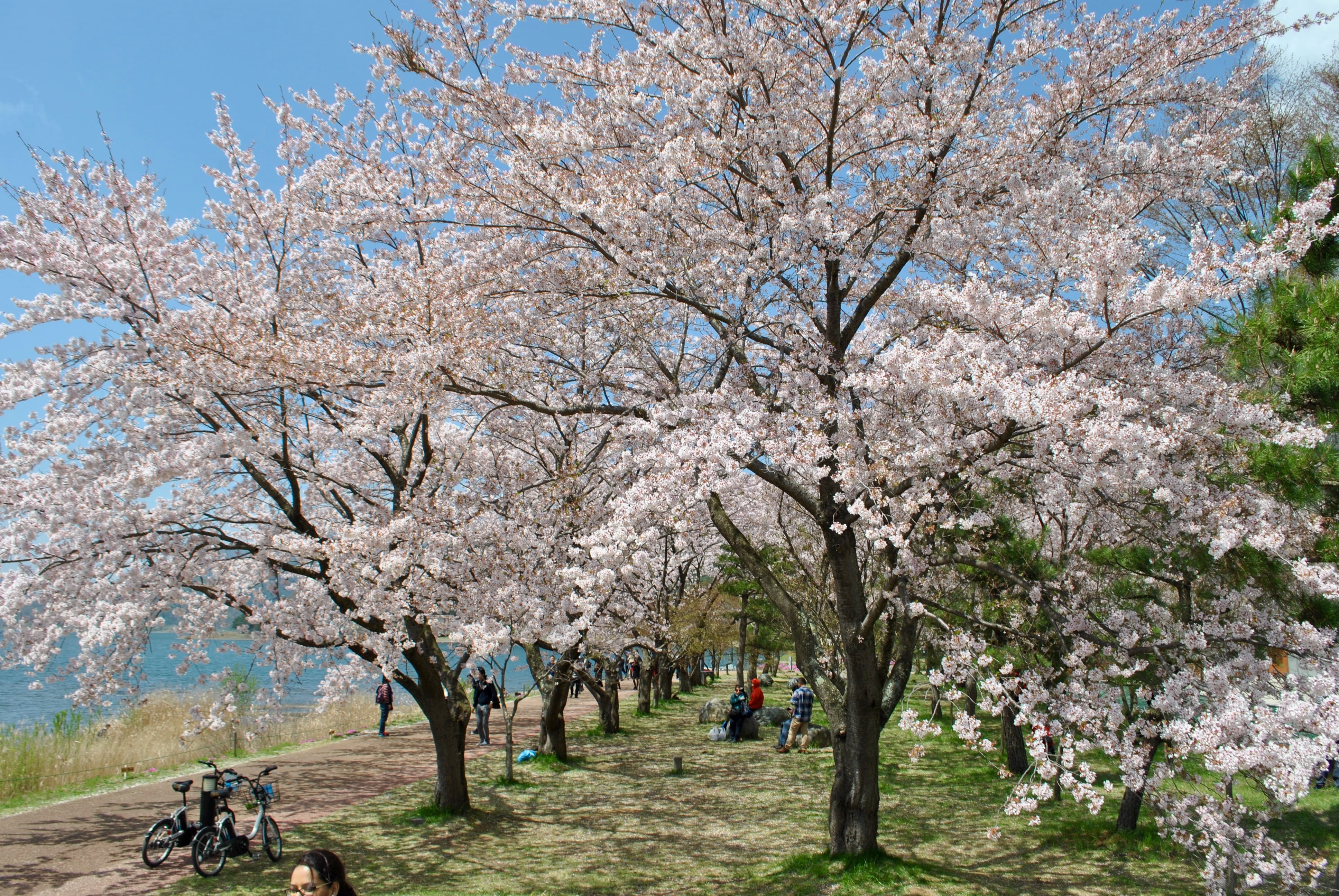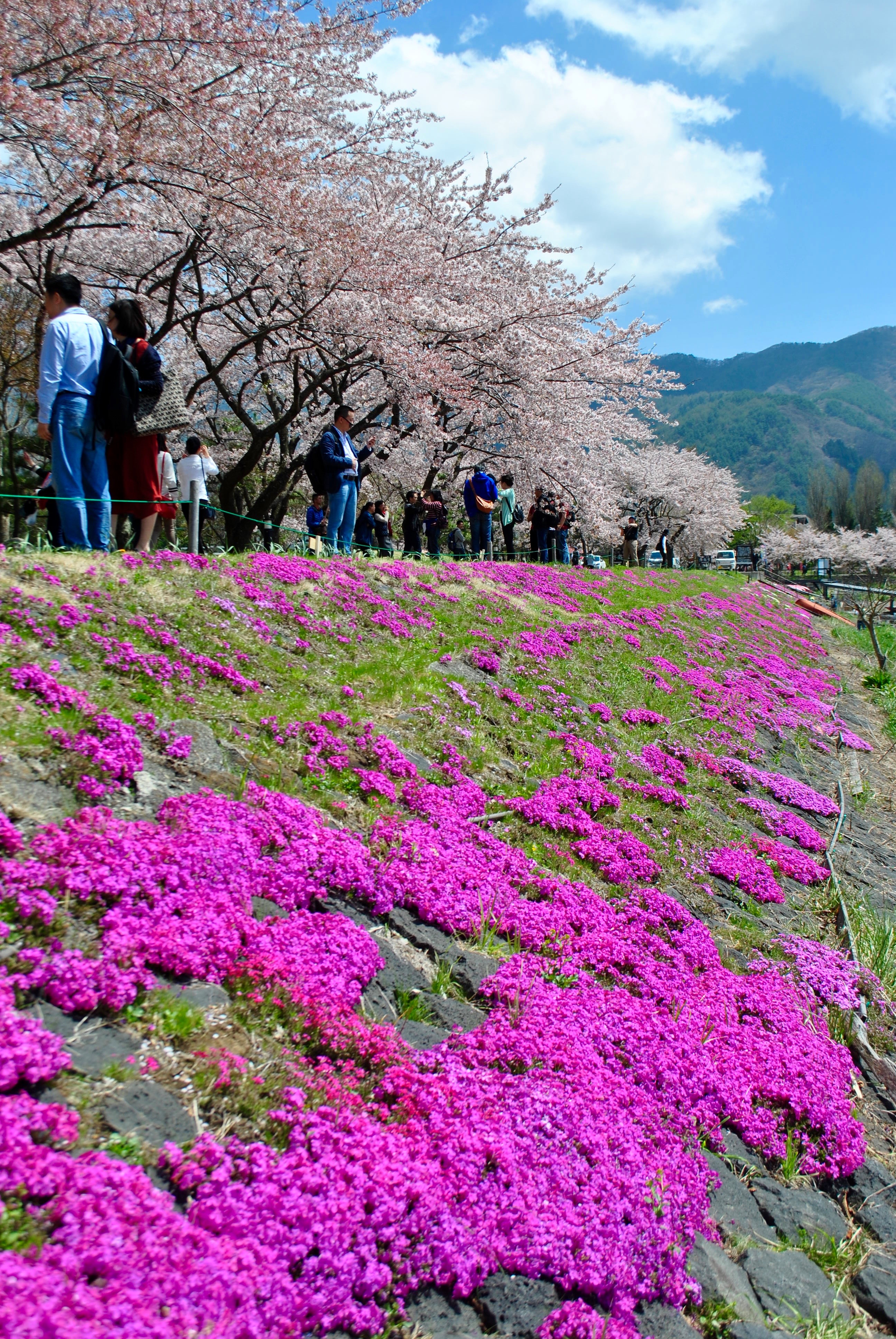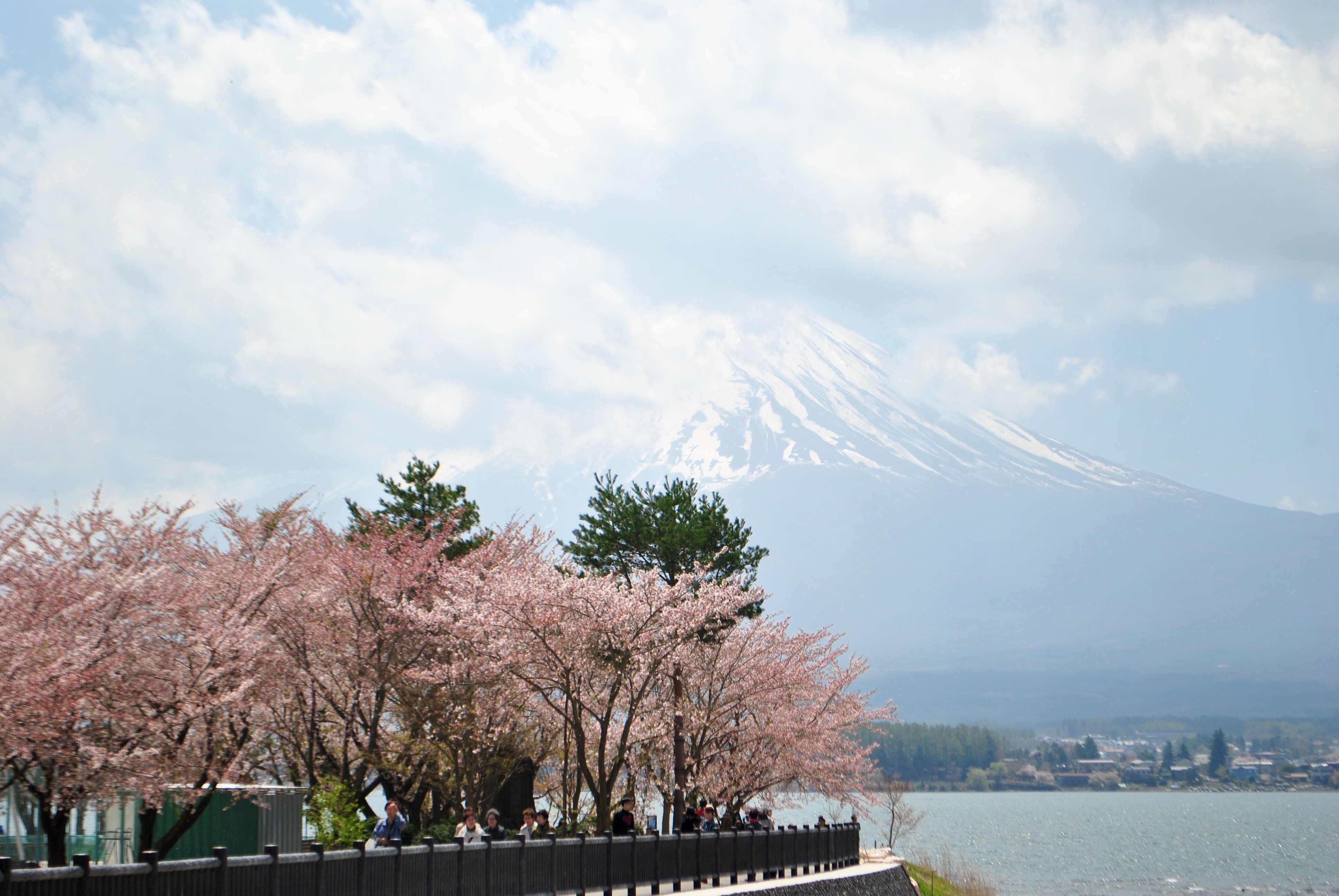 Il y a 5 lacs qui entourent le Mont Fuji, nous avons choisi le lac de Kawaguchi pour notre petit pause. C’est le plus accessible par la route. Après avoir fait le tour du lac, nous avons roulé jusqu’a Fujiyoshida, la ville la plus proche où on peut admirer le mont Fuji de la montagne d’en face. La vue est époustouflante, avec en plus la pagode Chureito qui rajoute un côté encore plus surréaliste à l’endroit. C’est la que je vous amène la prochaine fois ! Pour ceux qui voudraient aller au Japon mais éviter la saison des cerisiers (qui est la plus chère de l’année) il est aussi possible de voir les tulipes au pied du mont Fuji ou des parterres de fleurs roses, appelés shibazakura. Toutes les informations sur ces deux festivals se trouvent ici.