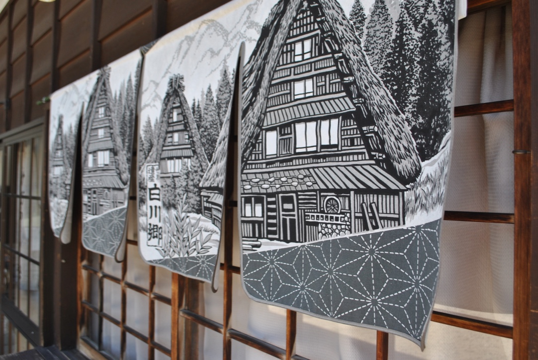 Gassho-zukuri ( farmhouses) means « constructed like hands in prayer », as the farmhouses’ steep thatched roofs resemble the hands of Buddhist monks pressed together in prayer. The architectural style developed over many generations and is designed to withstand the large amounts of heavy snow that falls in the region during winter. The roofs, made without nails, provided a large attic space used for cultivating silkworms.