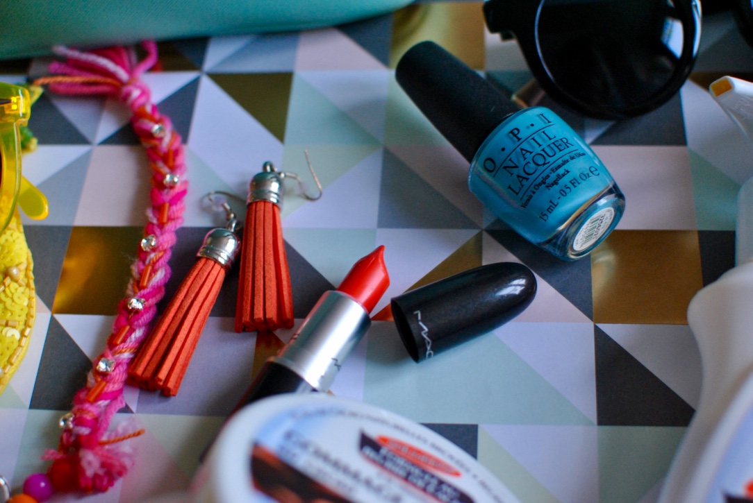 Pour aller avec toutes ces tenues, je prends aussi mes rouges à lèvres colorés et mes boucles d’oreilles en cuir, m’aideront à me fondre dans ce paysage caribéen.