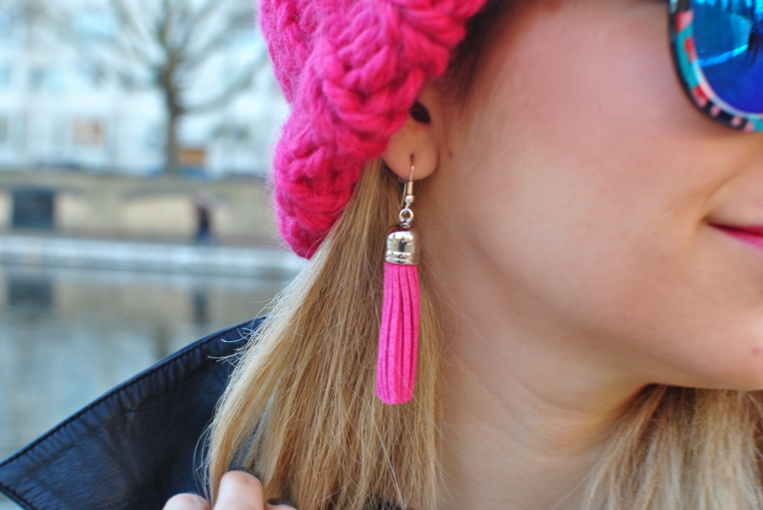 Today’s outfit is black & pink, as pink is my favorite color, I usually mix it with black so it doesn’t get too Barbie looking. When I bought my bag I went to John Lewis to buy a matching yarn ball, I wanted to make a chunky beanie to match it with a good quality yarn. I knitted it quickly with big needles, added a massive pompon and I was ready to go !