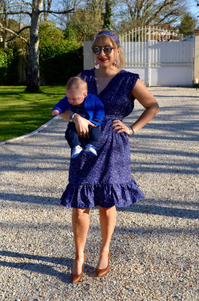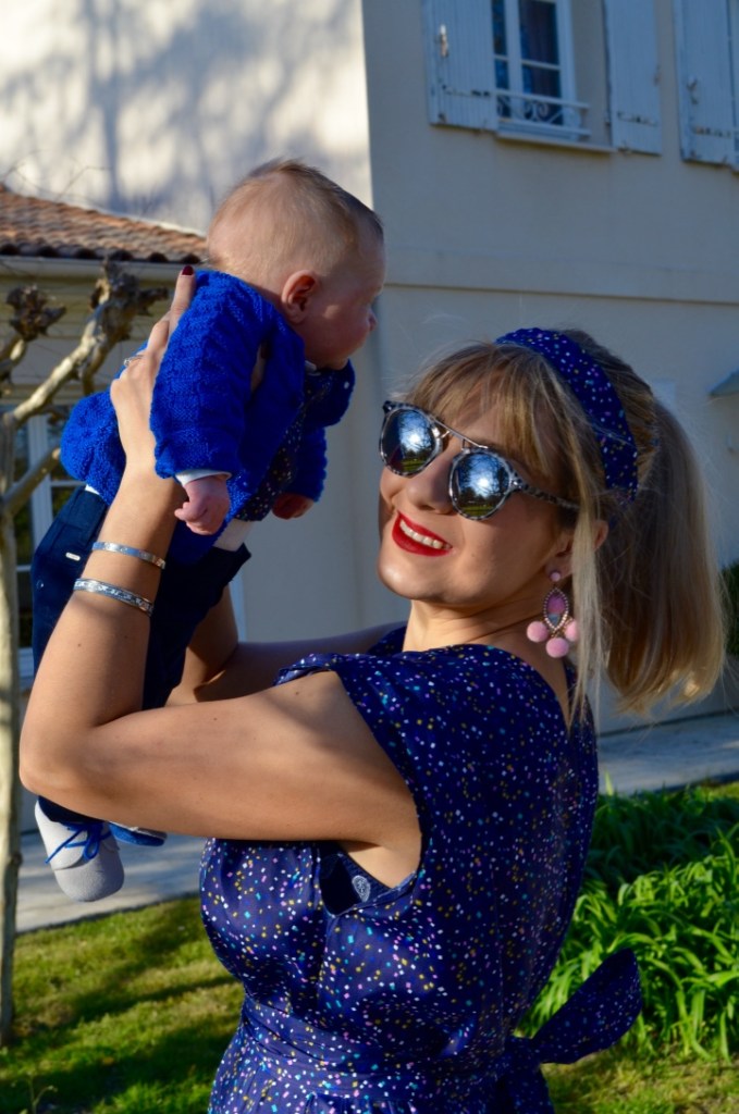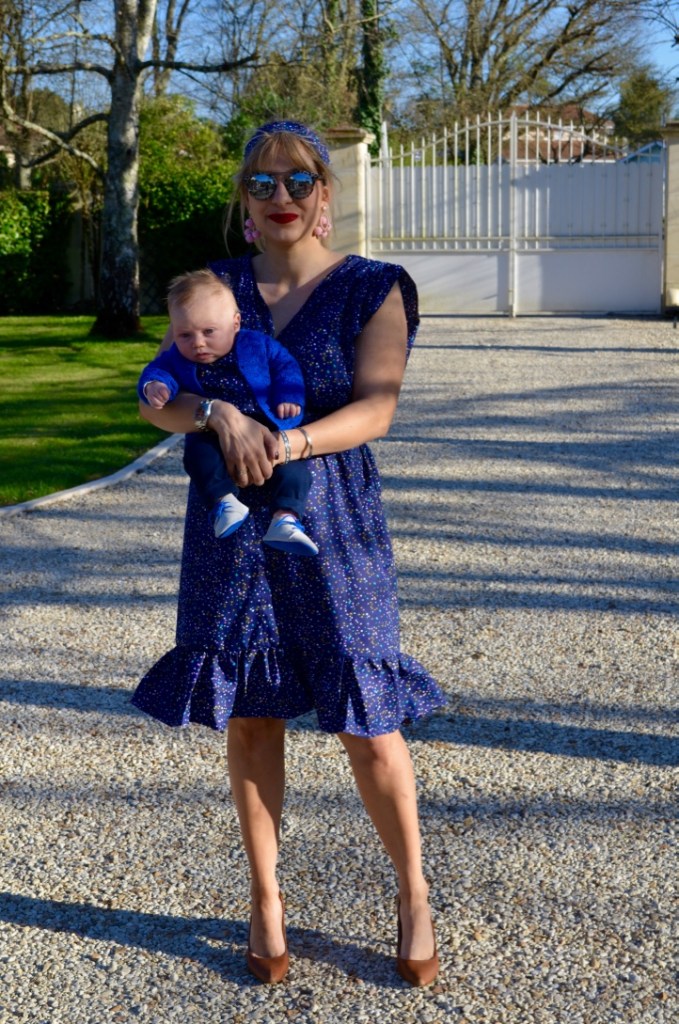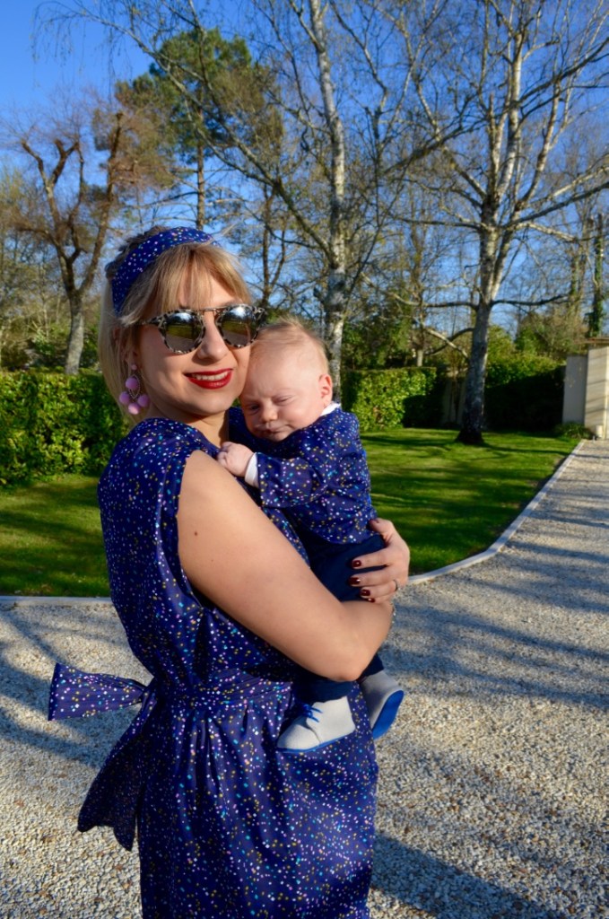 This year I’ll be on the other side, judging the designs on Instagram, I’ve made the dress with a festive navy blue fabric from Les Coupons de Saint Pierre and also a matching shirt for Baby Augustin.