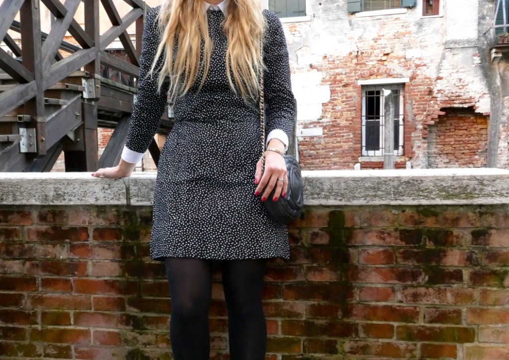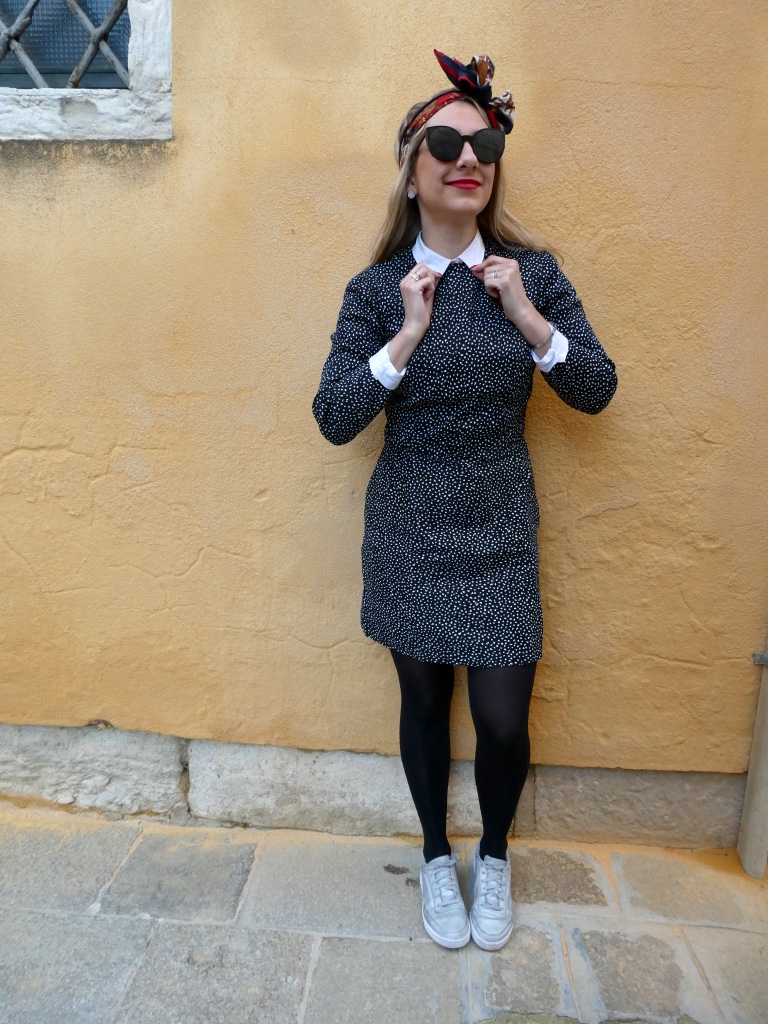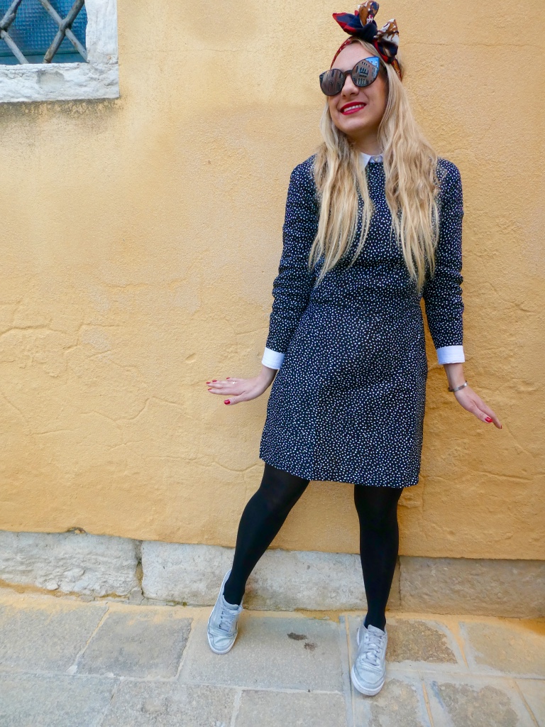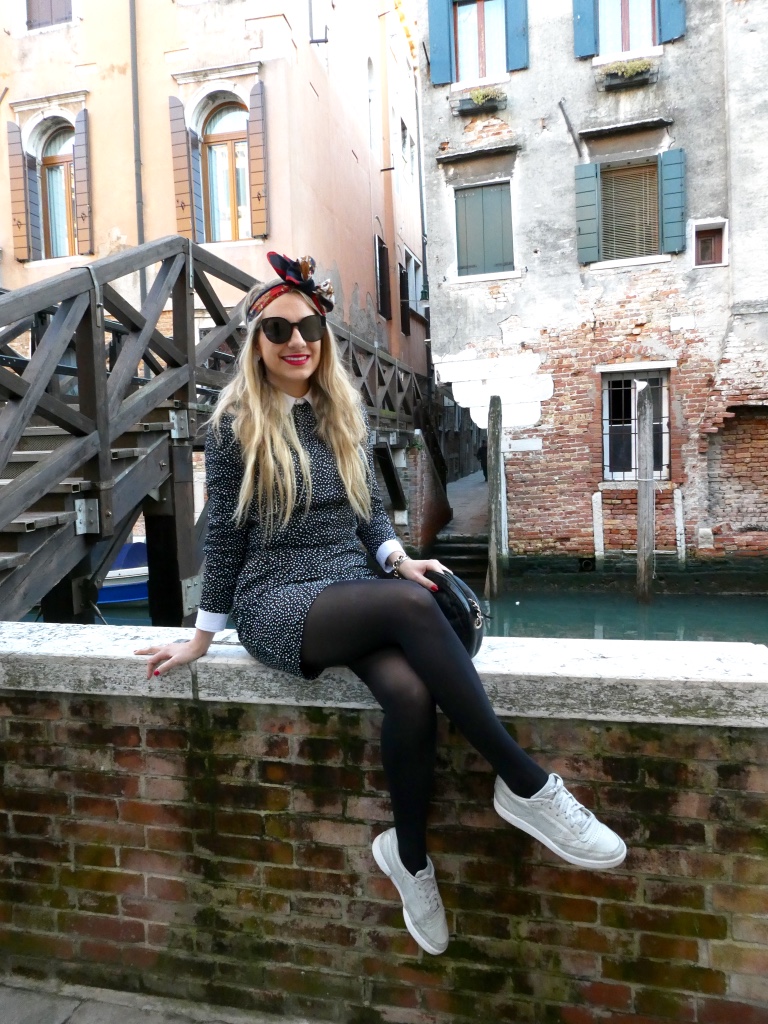 Venice was an amazing trip and I have one last outfit to show you before I move on to another trip ! This dress is handmade from an old pattern, I like that it’s fitted and also made from a stretchy fabric. I try to make my clothes as much as I can, it was much easy without having Augustin but I still try to stick to it and not get tempted into fast fashion.