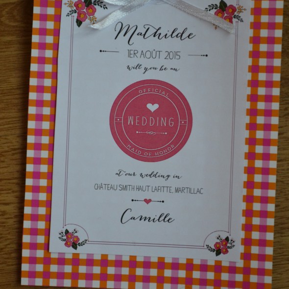 Will you be my maid of Honor ? Veux-tu être ma témoin ?