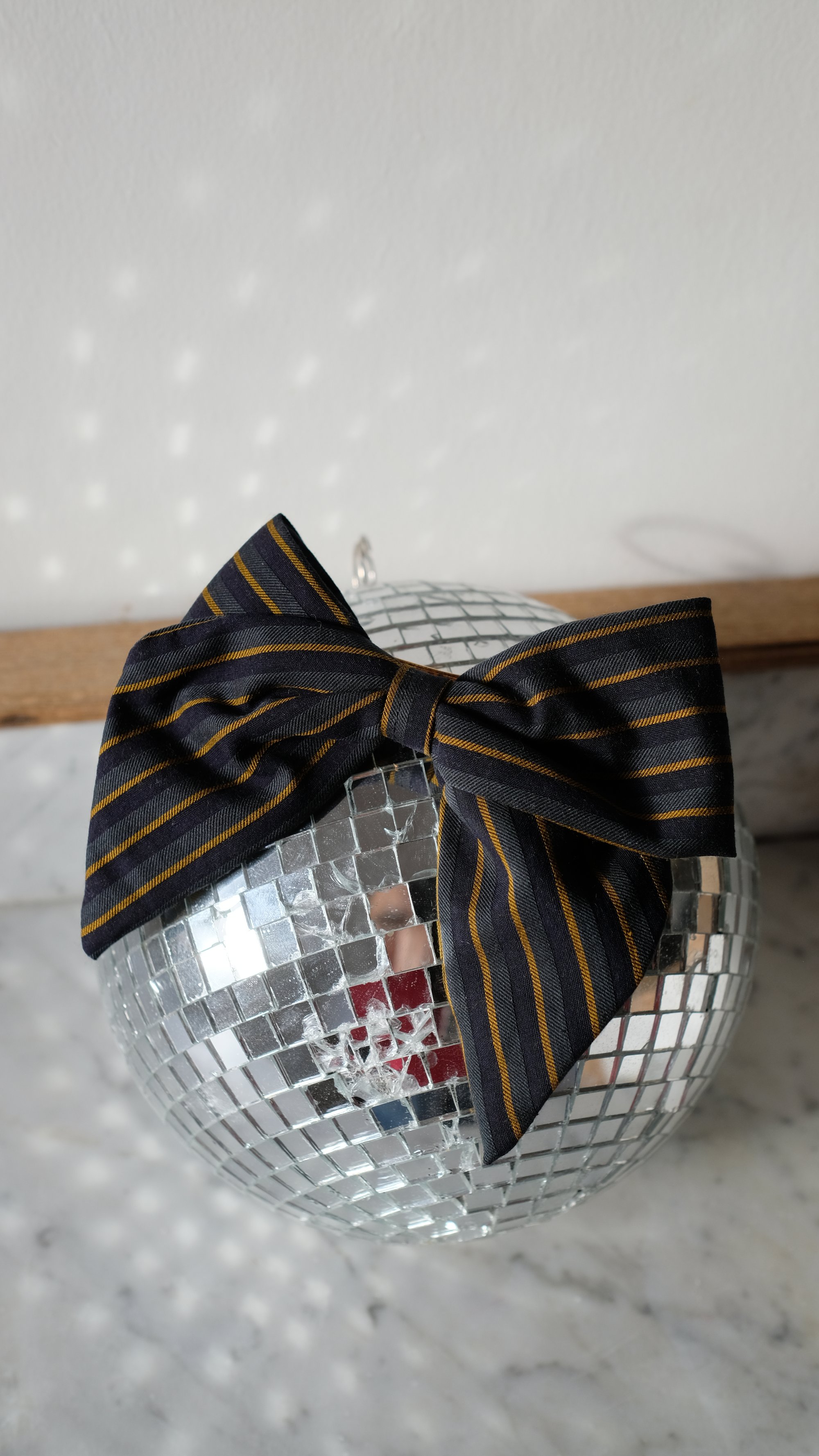 Apportez une touche de chic instantanée à votre coiffure avec notre grosse barrette noeud, montée sur une barrette dorée. Confectionnée avec soin en France, elle allie élégance et qualité pour sublimer toutes vos tenues.