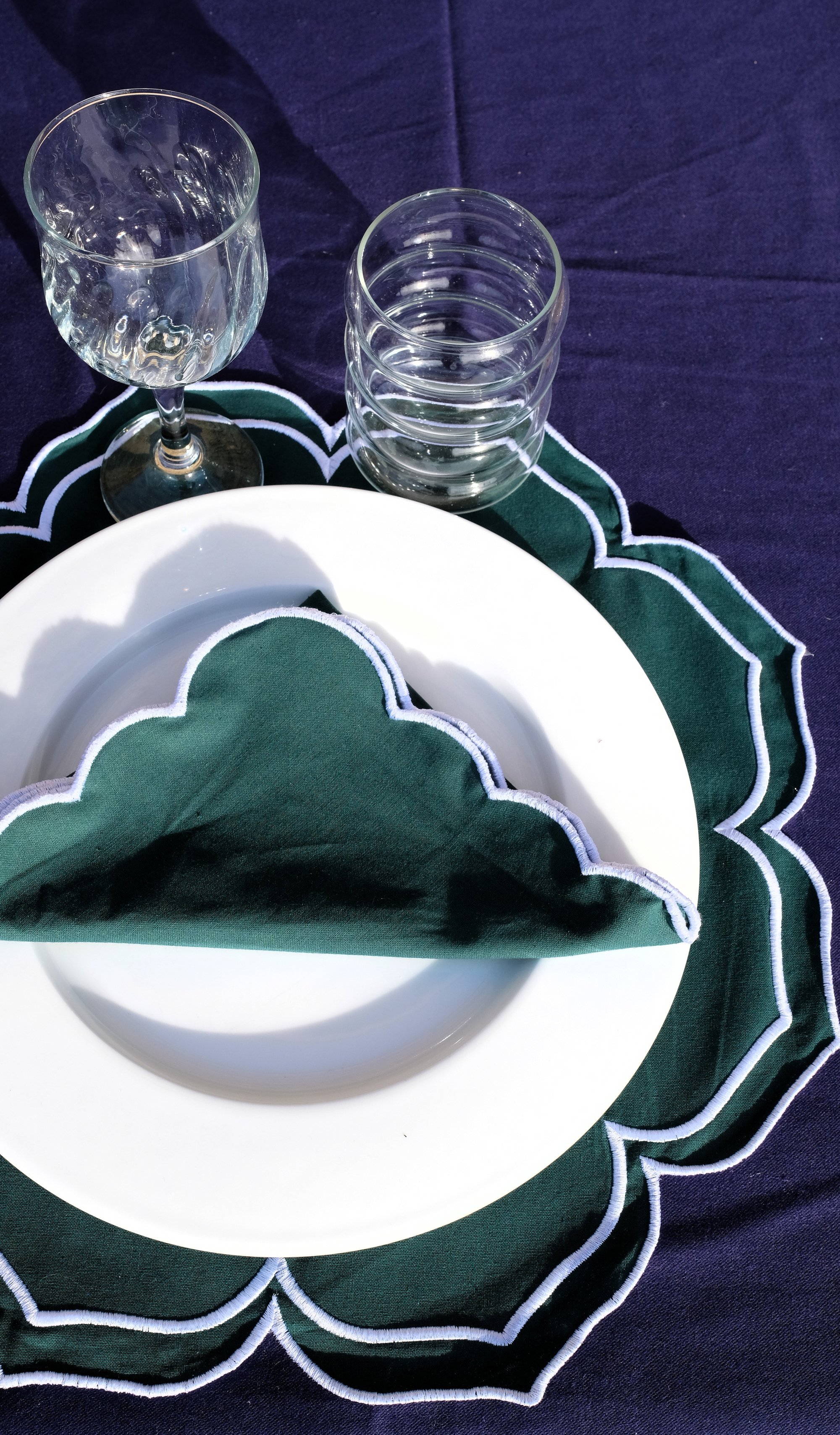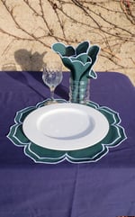 Le set de table Camélia apporte une touche d’élégance florale à votre table. Inspiré de la douceur des pétales, son contour festonné est sublimé par une broderie blanche délicate, qui met en valeur sa silhouette raffinée.
